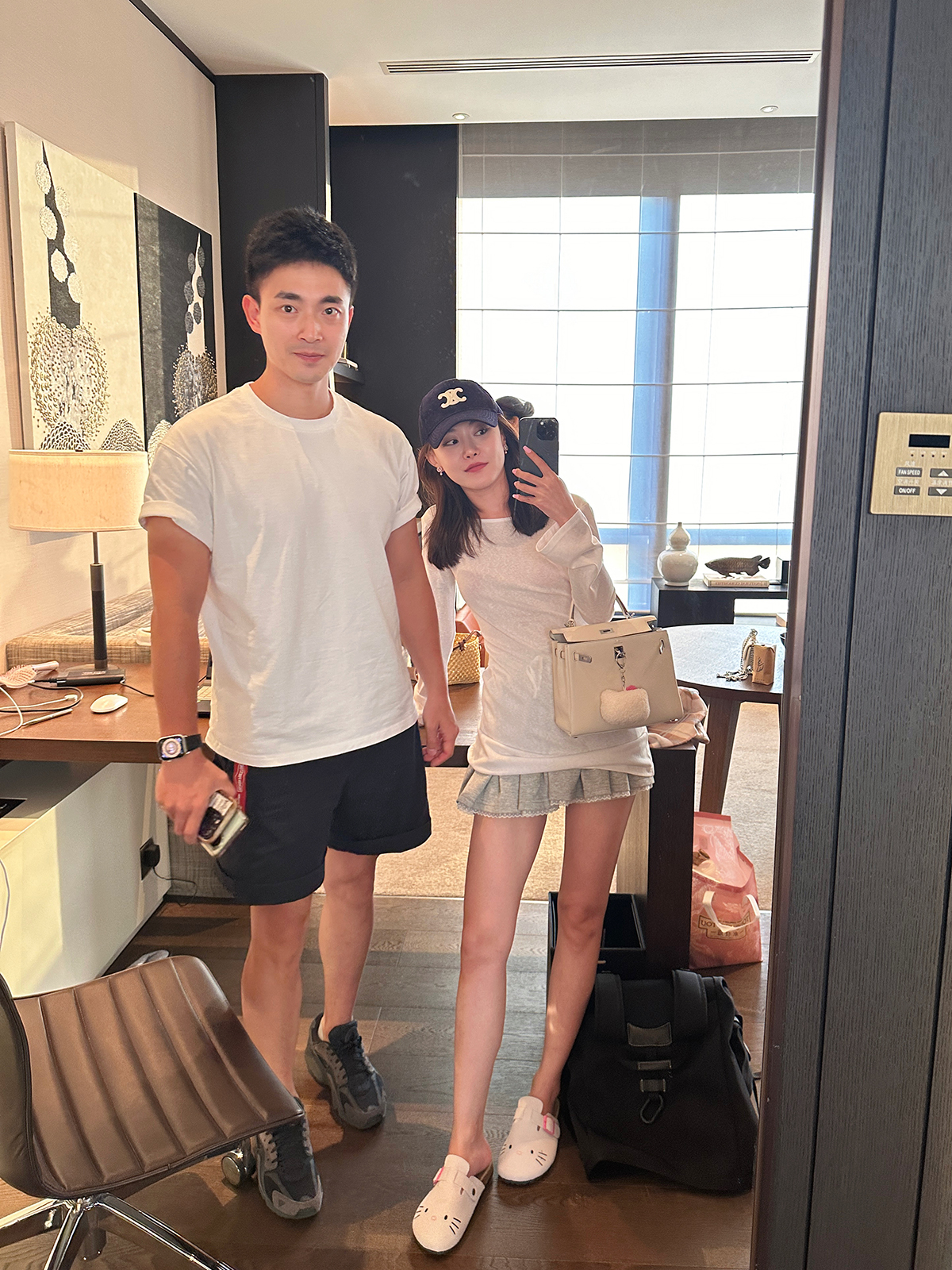 华夫格复古网球风大V领运动套装