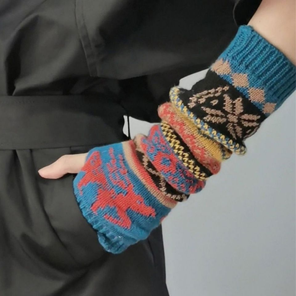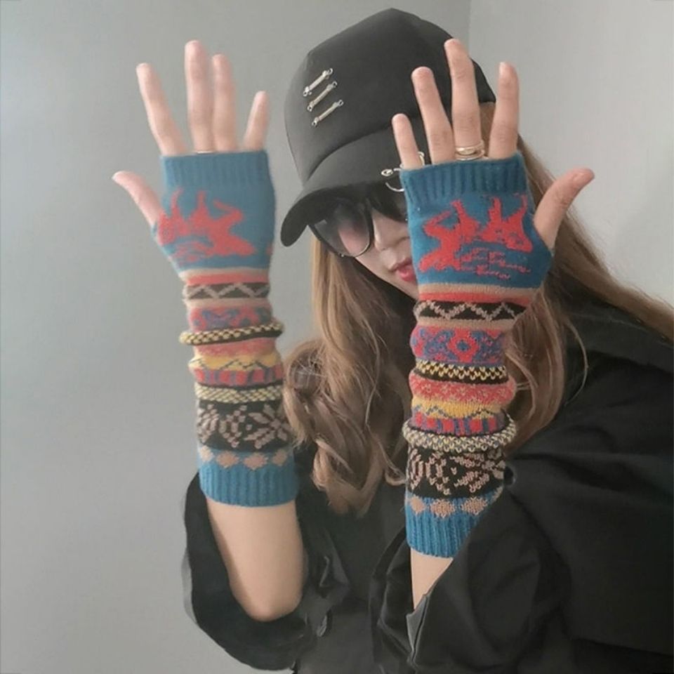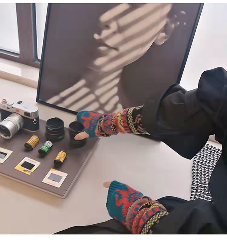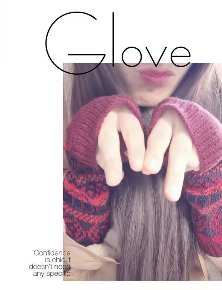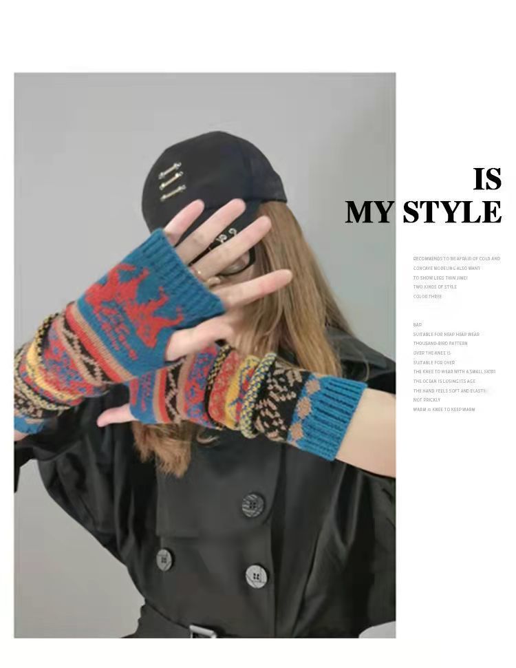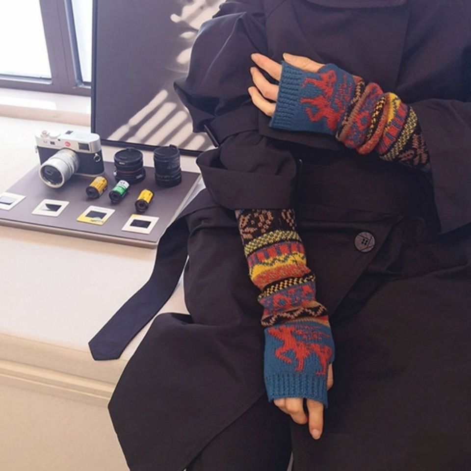 圣诞小鹿羊绒手套无指洞秋冬天女假袖子护肘送女友的好袖套