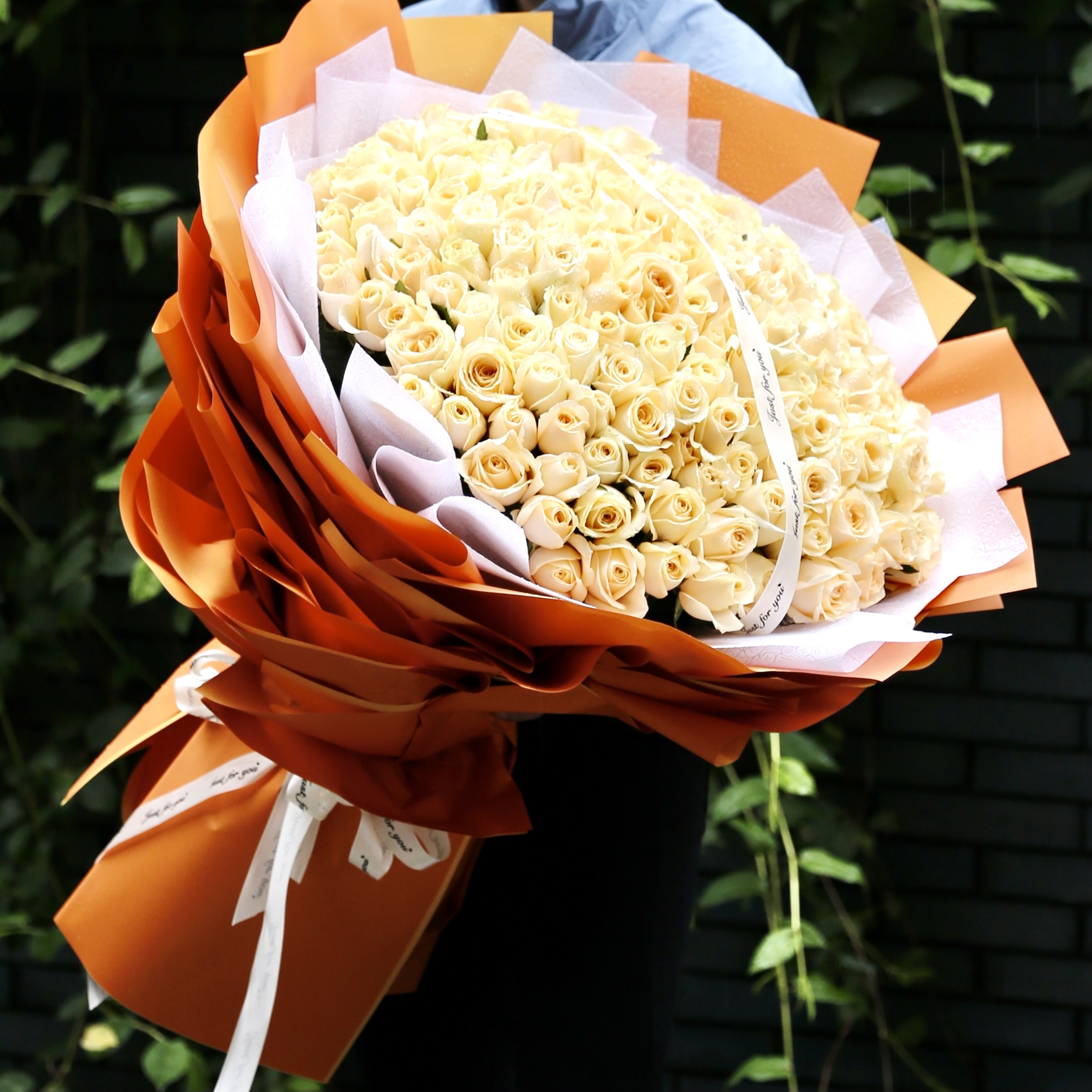 199朵香槟玫瑰韩式花束