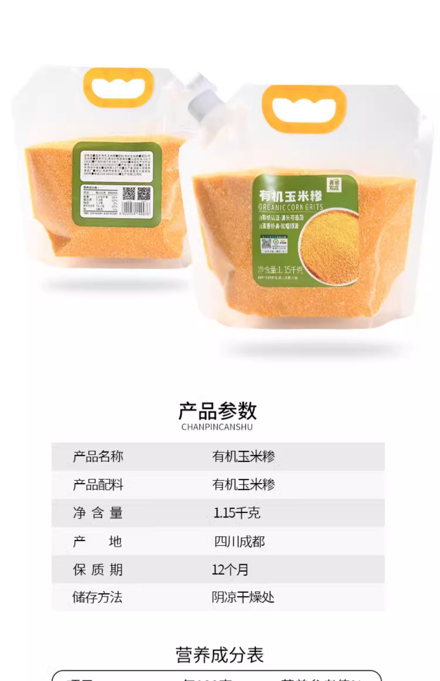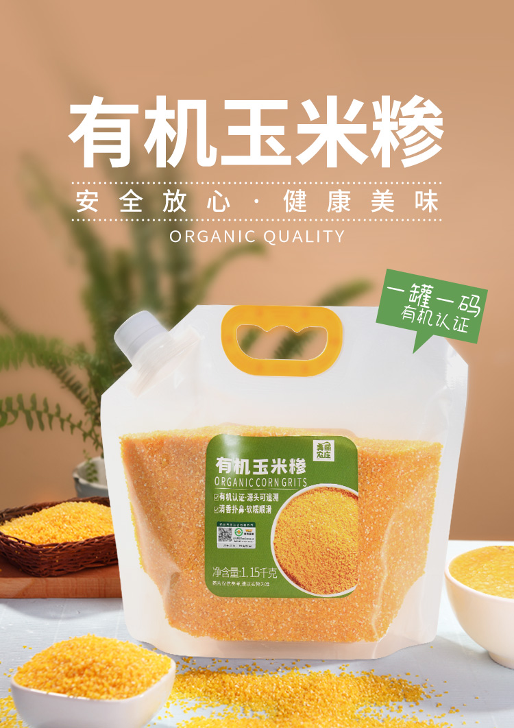 美丽农庄有机玉米糁 甘肃原产糯玉米碴煮饭熬粥家庭实惠装1.15kg/袋