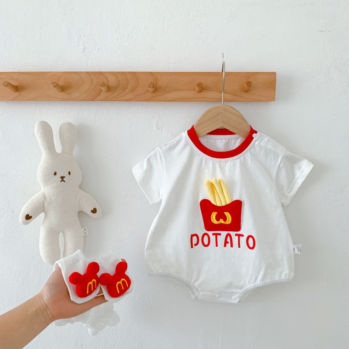 【薯条兜包屁衣+袜子】婴儿衣服夏装包屁衣薄款新生儿男宝宝连体衣超萌百天满月哈衣夏季