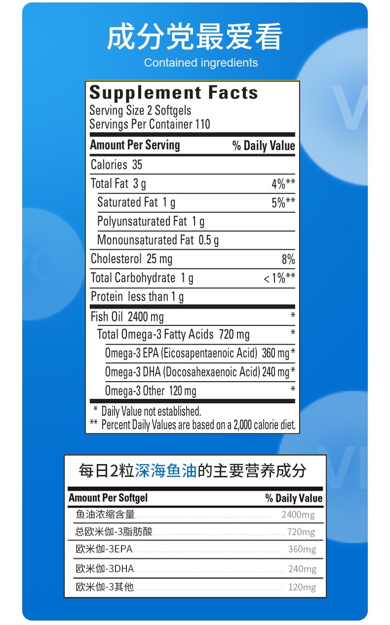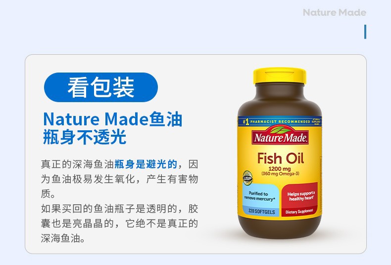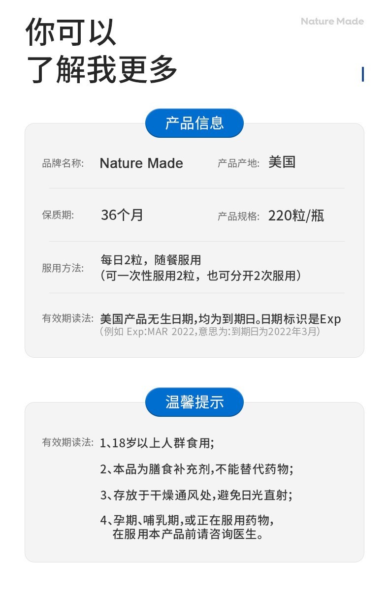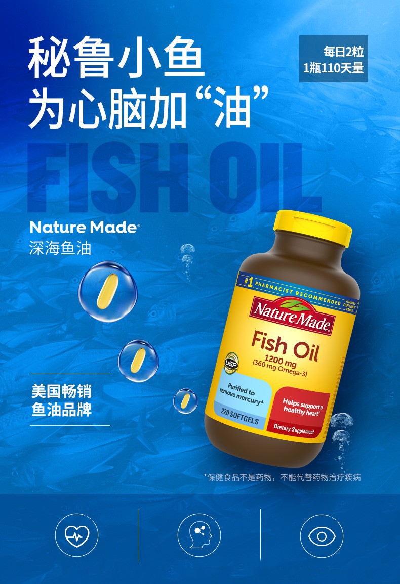 【保税仓】美国Nature Made天维美深海鱼油软胶囊220粒/瓶