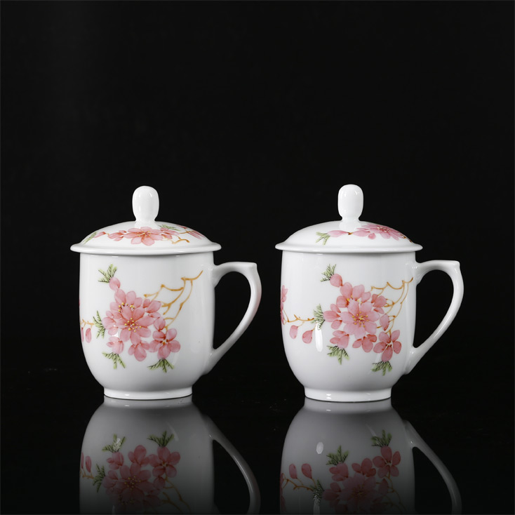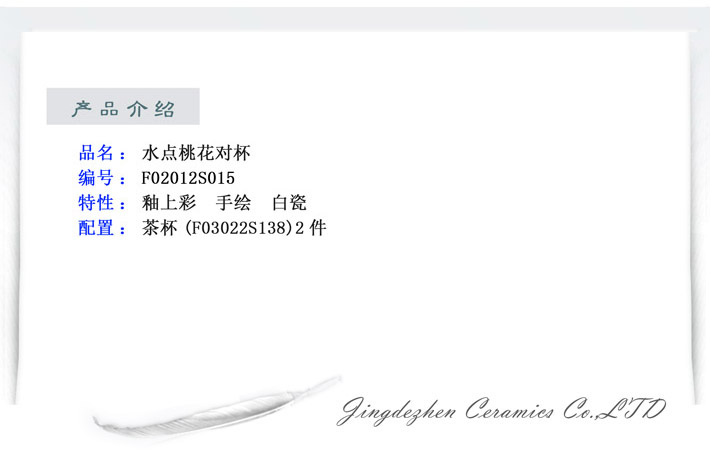 景德镇陶瓷 国瓷红叶 水点桃花对杯