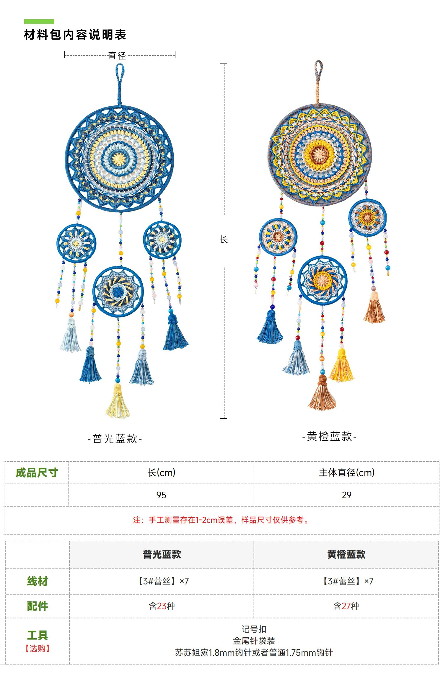 苏苏姐家大圆满曼陀罗捕梦网手工DIY钩针编织装饰毛线团材料包