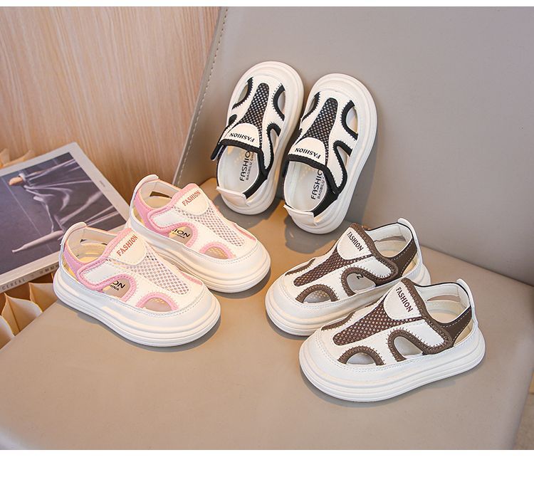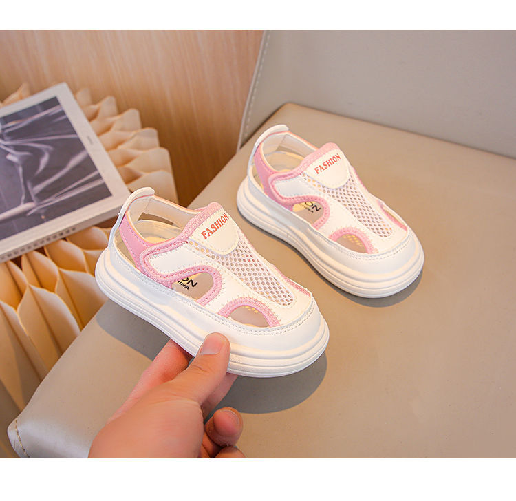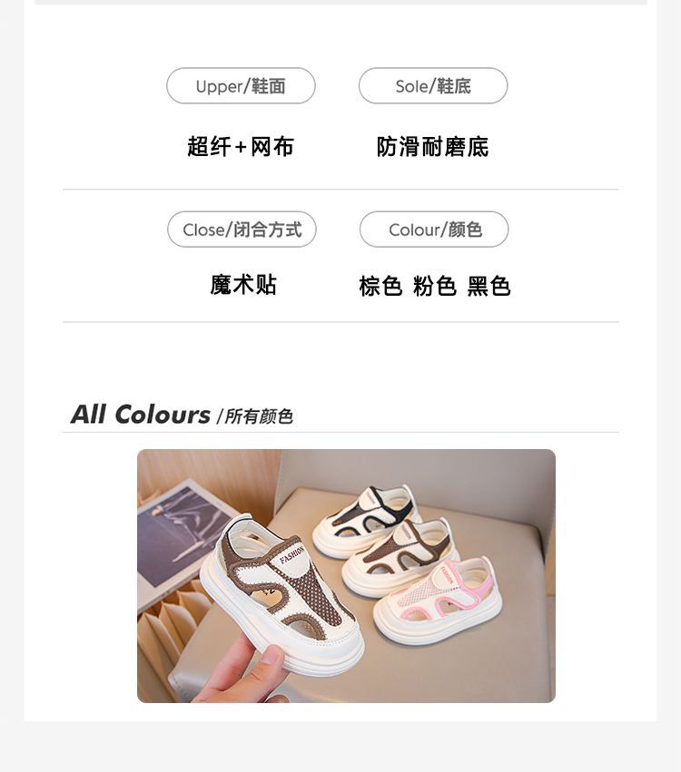 【夏季新款百搭网面凉鞋】专为中国孩童打造儿童凉鞋舒适无负担,柔软轻盈耐磨防滑鞋底,镂空透气女童包头凉鞋时尚小童单网鞋凉鞋QQ