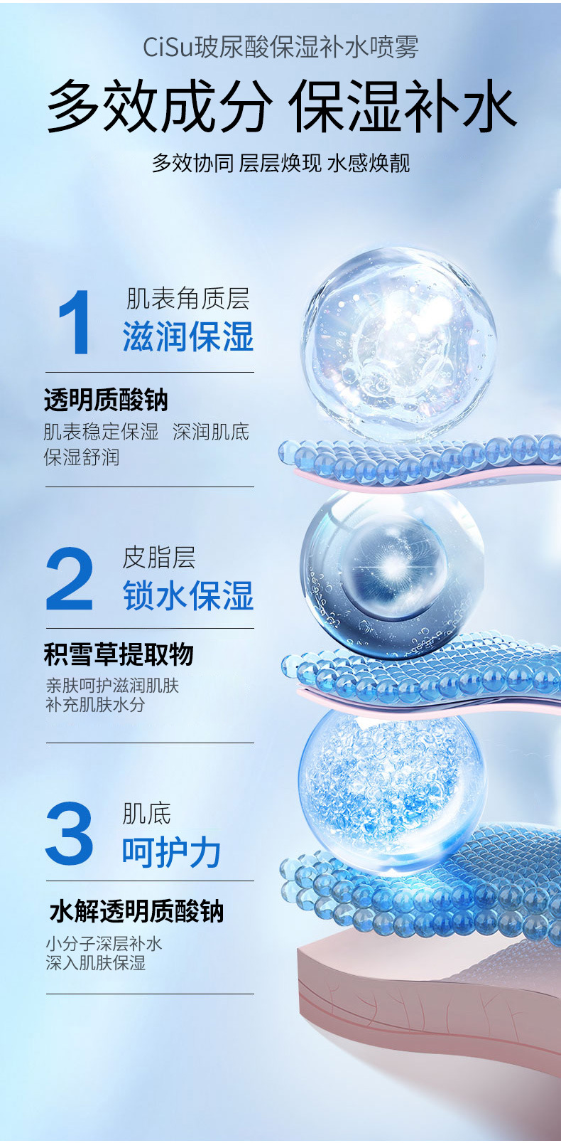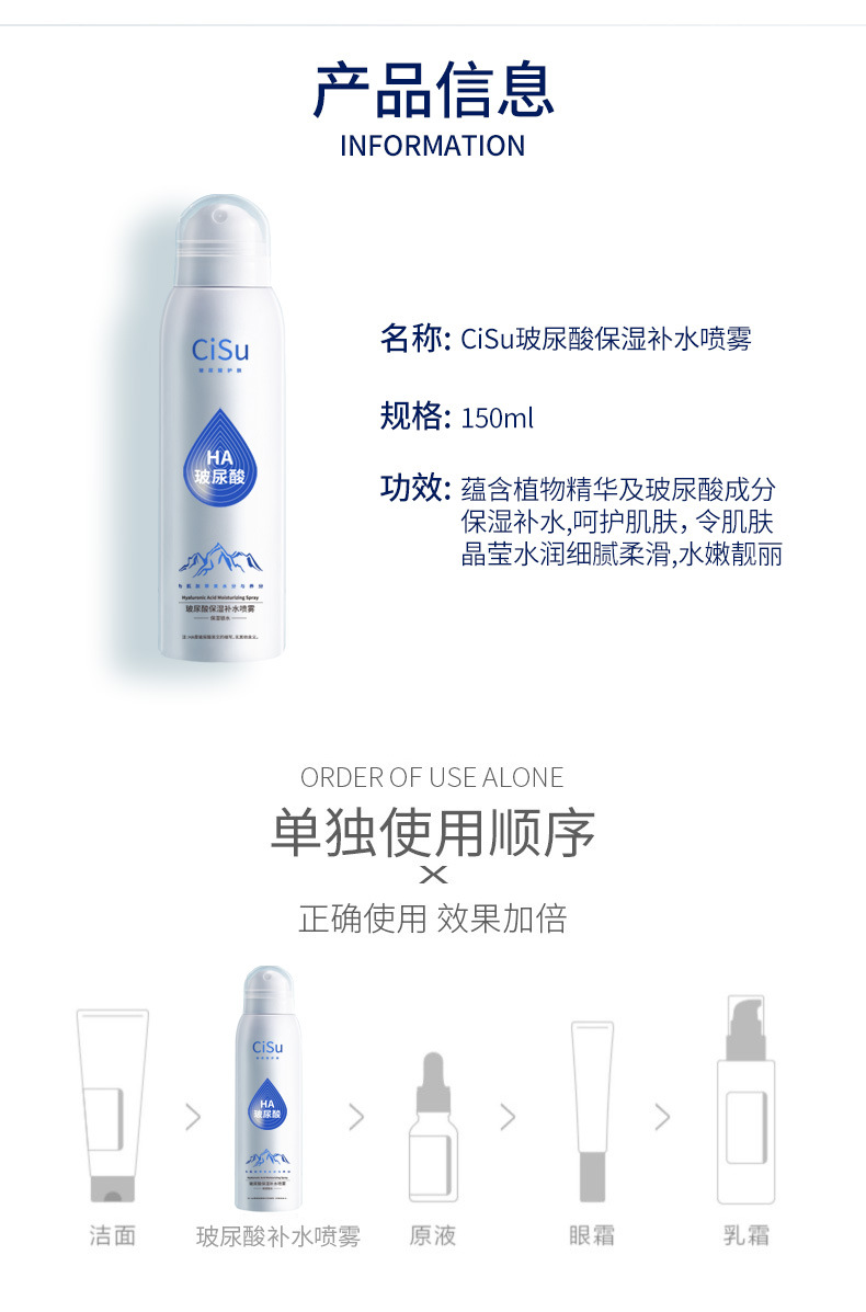 【超值2瓶装下单立减10元! CISU玻尿酸保湿补水喷雾】360度随心喷,细腻喷雾瞬间补水,妆前补水定妆喷雾L