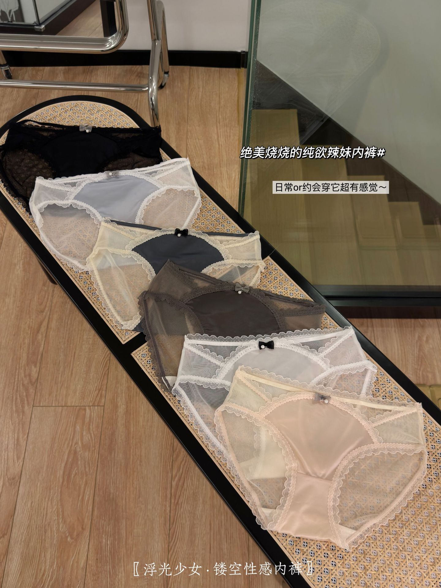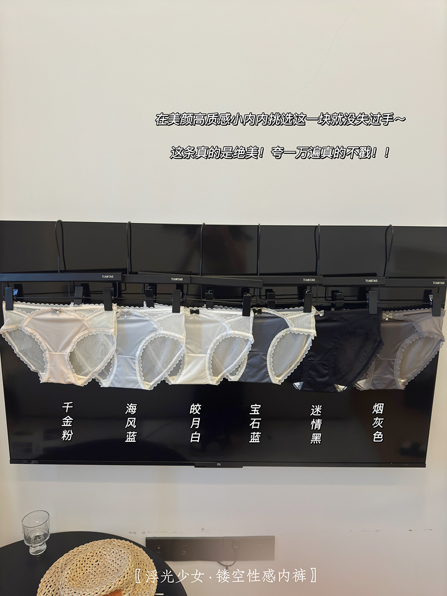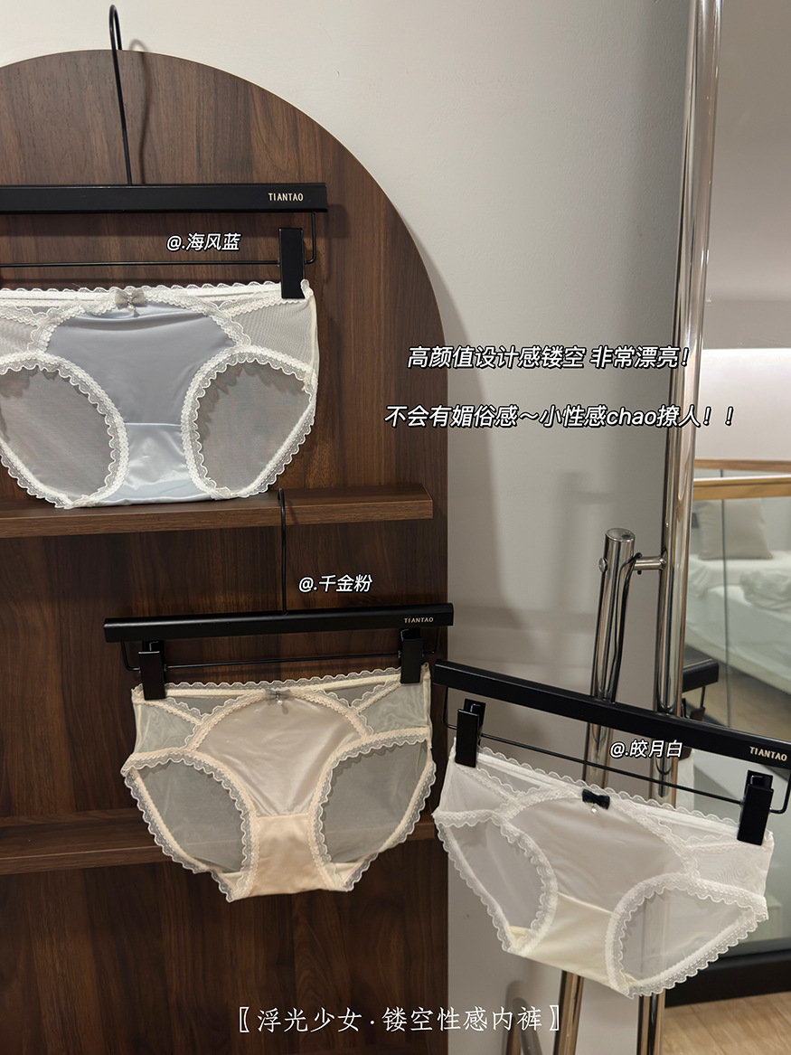 【3条装!浮光镂空性感内裤】半透网纱与绸缎拼接设计,每一秒都非常chill,这美感真的绝顶哇~法式纯欲女蕾丝边蝴蝶结夏季透气棉裆女士三角裤