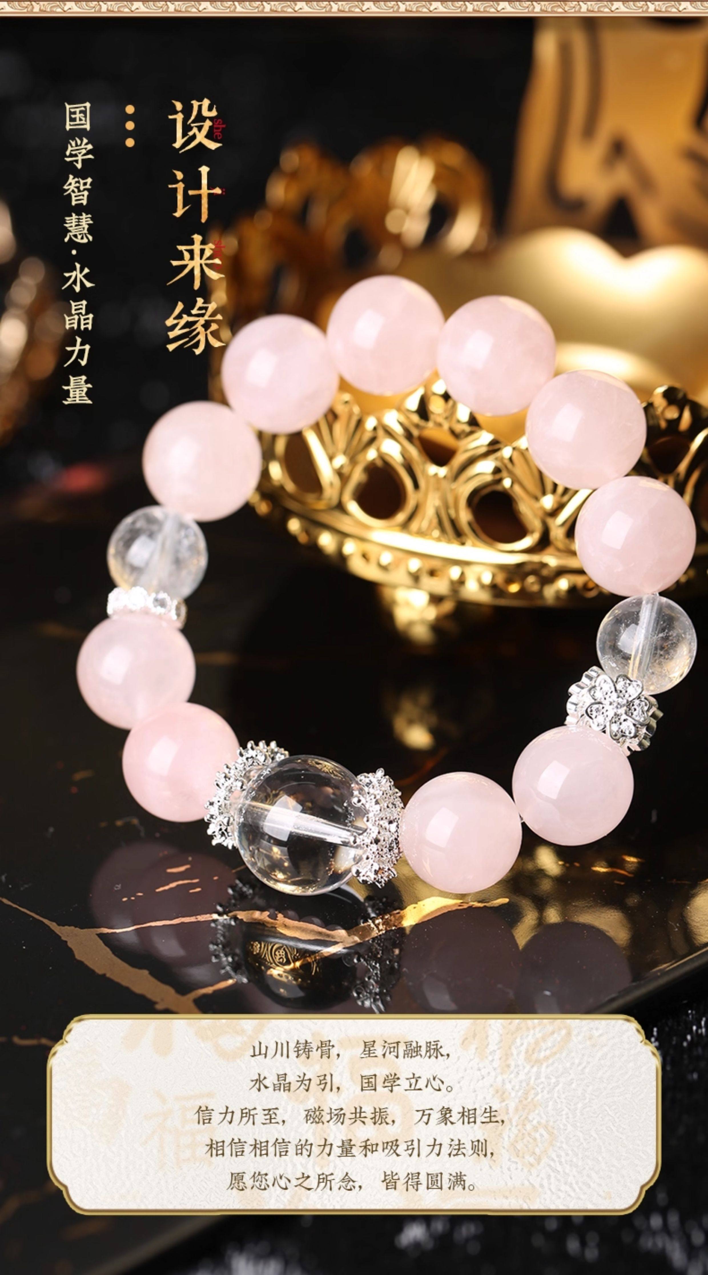 【祈愿吉品】粉晶白水晶手链新款高级精致水晶