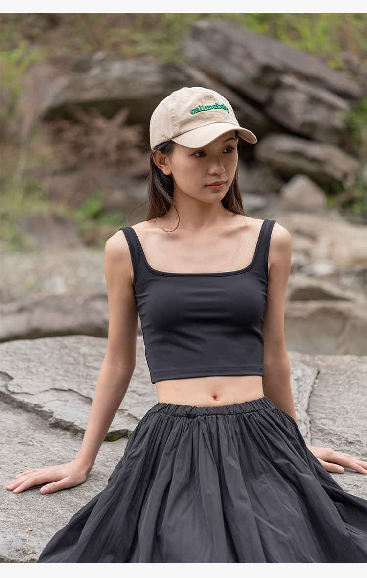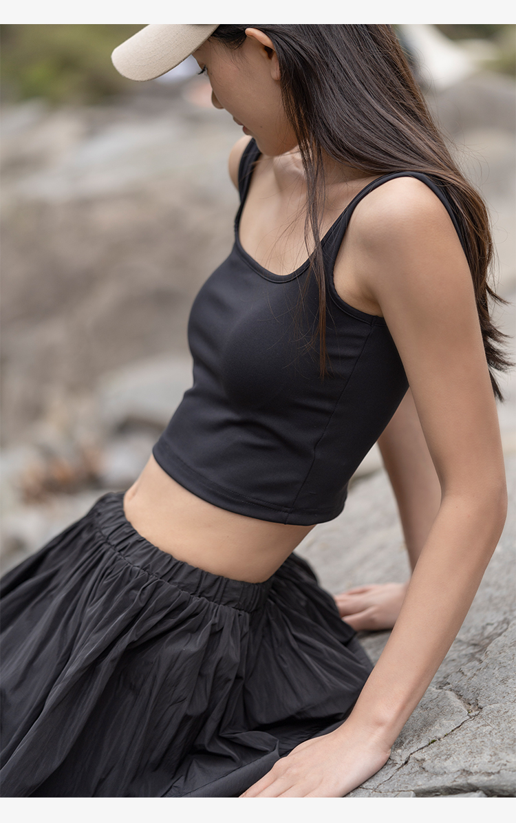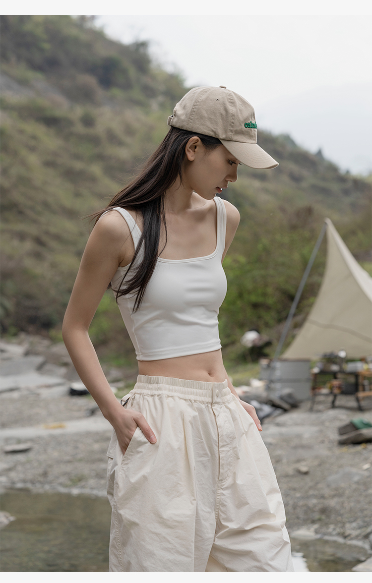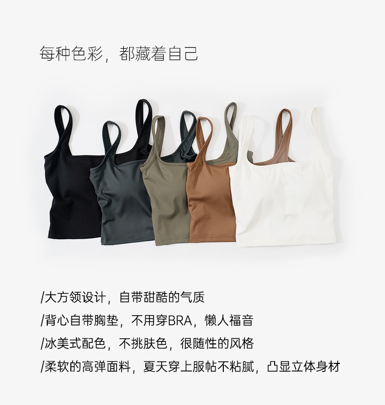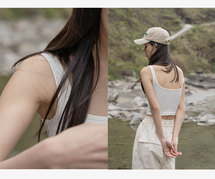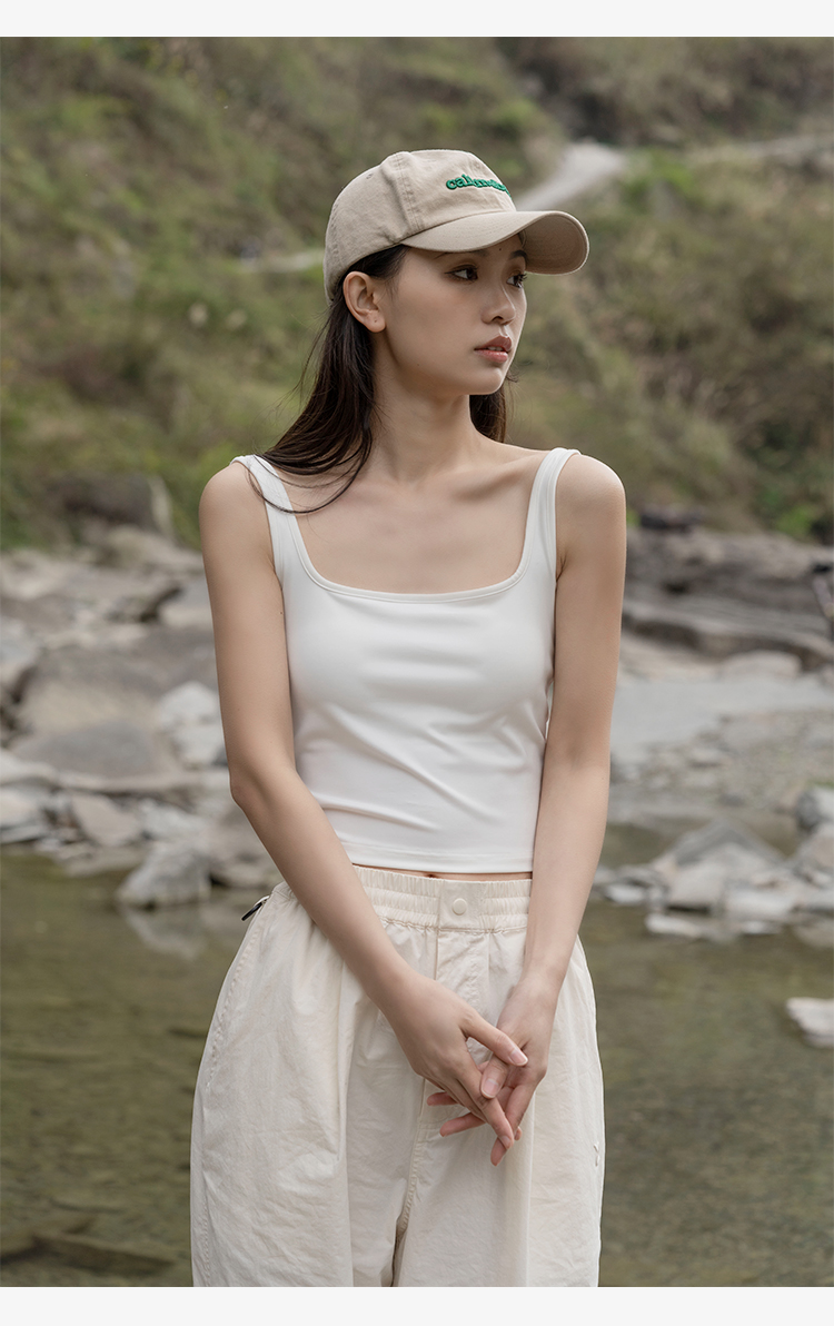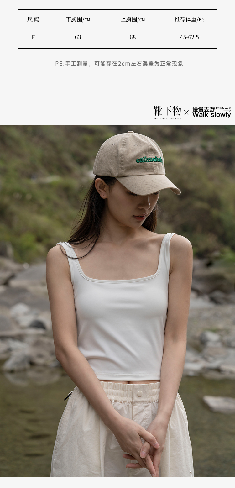靴下物吊带背心女带胸垫白色春夏薄款法式方领