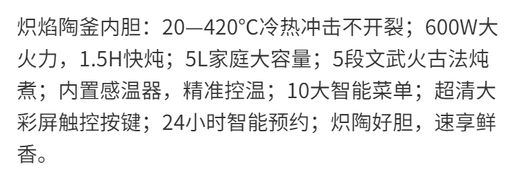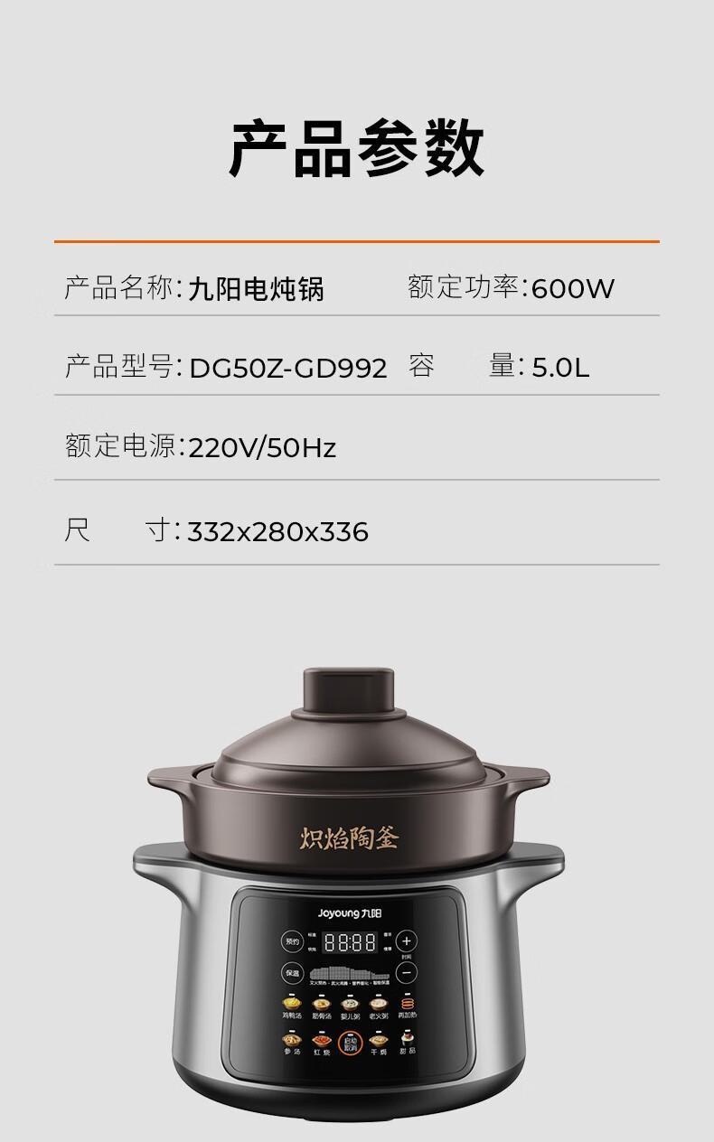 【炽焰陶釜】Joyoung/九阳GD992A电炖锅家用5L升快炖大火力炖汤锅