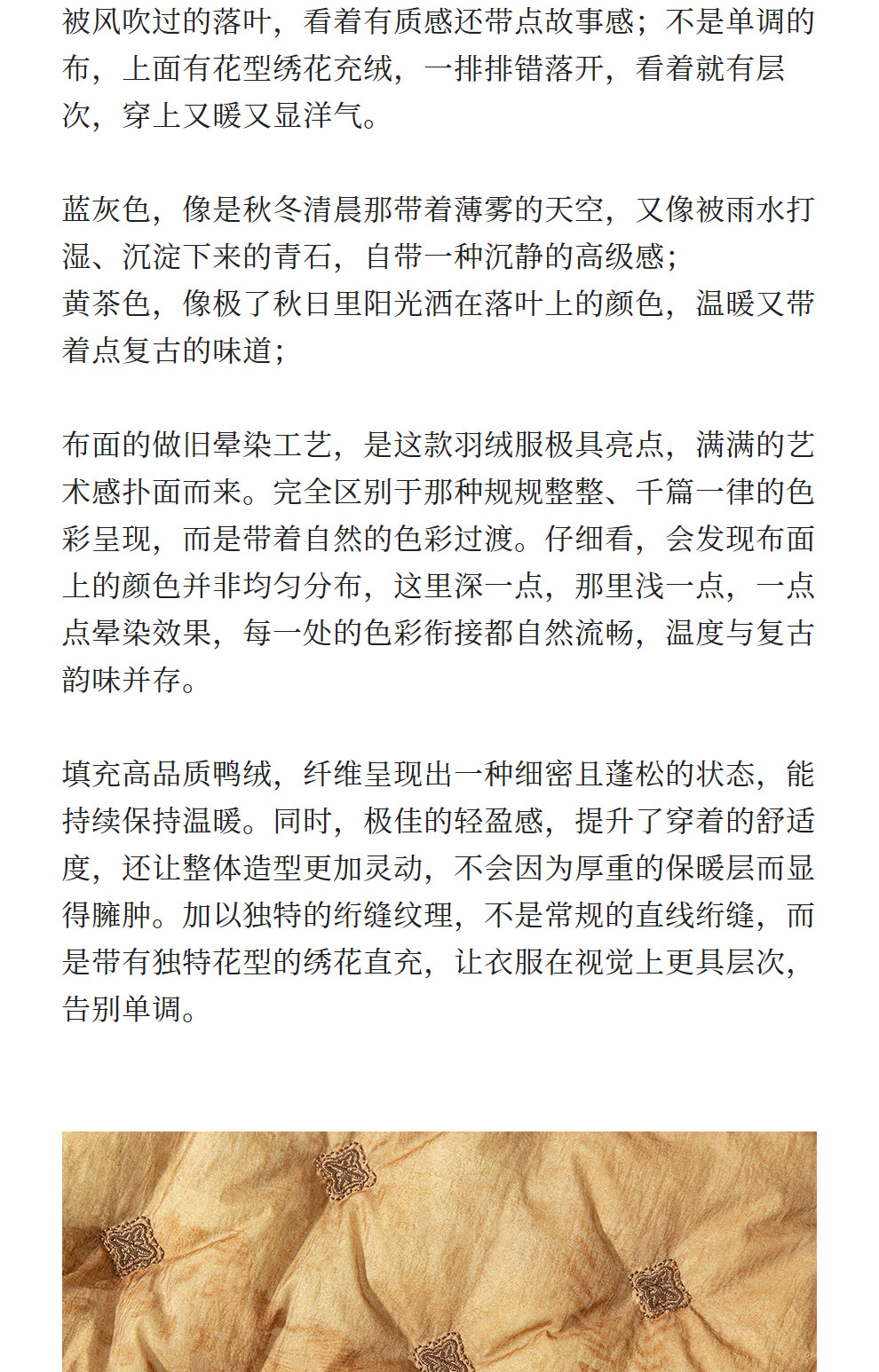绽放684朵/秋风与落叶·设计感刺绣新中式90鸭绒短款羽绒服冬新款