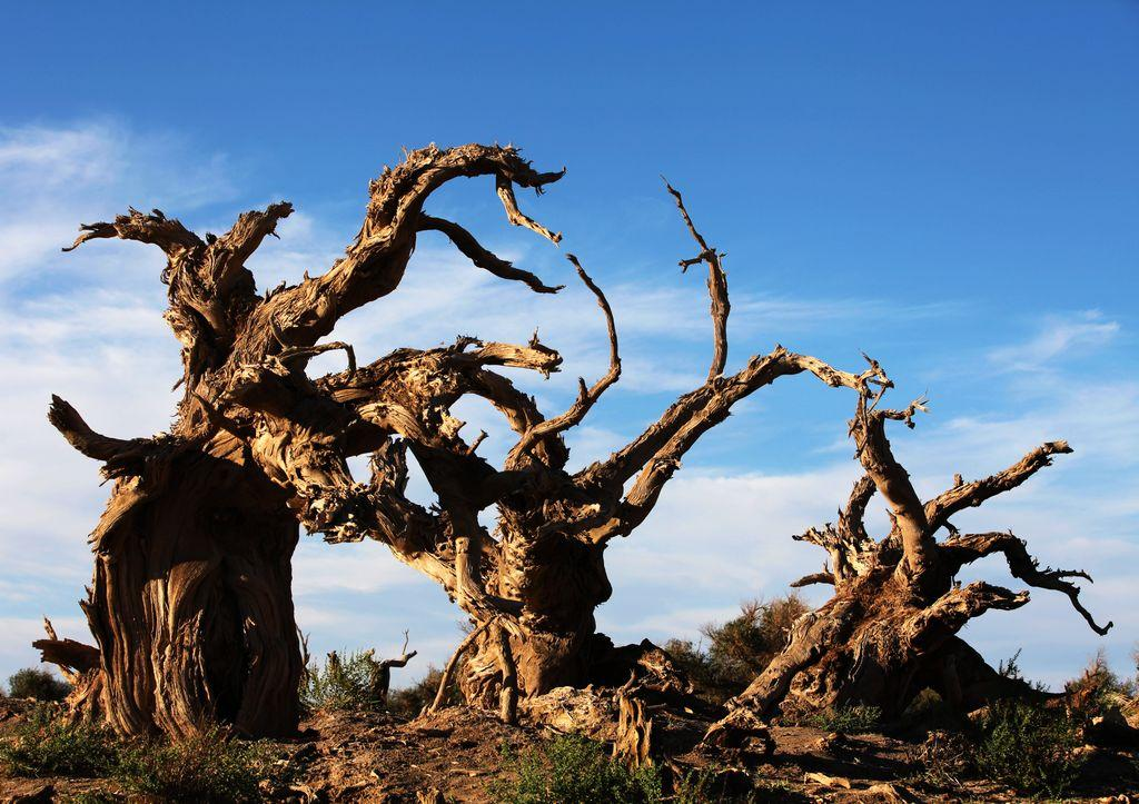 【睡胡杨谷】河改道,胡杨集体逐年干枯,尼雅古城、圆沙故城和昆岗先民家园以及下游楼兰古城消失,史学家一致认为水消失是主因,这片胡杨林成为无言的佐证,与天空构成凝重的和谐。
