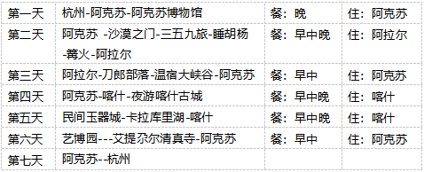 景点门票 | 刀郎部落温宿大峡谷+区间车 沙漠之门 睡胡杨 篝火晚会 卡拉库里湖 艾提尕尔清真寺 卡拉库里湖 白沙湖 备注:以上行程所列景点第一大门票及赠送项目,景点门票报价已为旅行社团队折扣价,故行程景点门票对所有证件 (如学生证、教师证、军官证、老年证等证件)均不再享受任何优惠政策,其优惠价格不予退还。赠送项目若因客观原因无法参观或客人放弃游览的费用不退不免。(打包产品门票无任何证件优惠和退费;需提供证件配合导游购票)行程中的景点根据实际情况前后调整,不减少景点。 | |