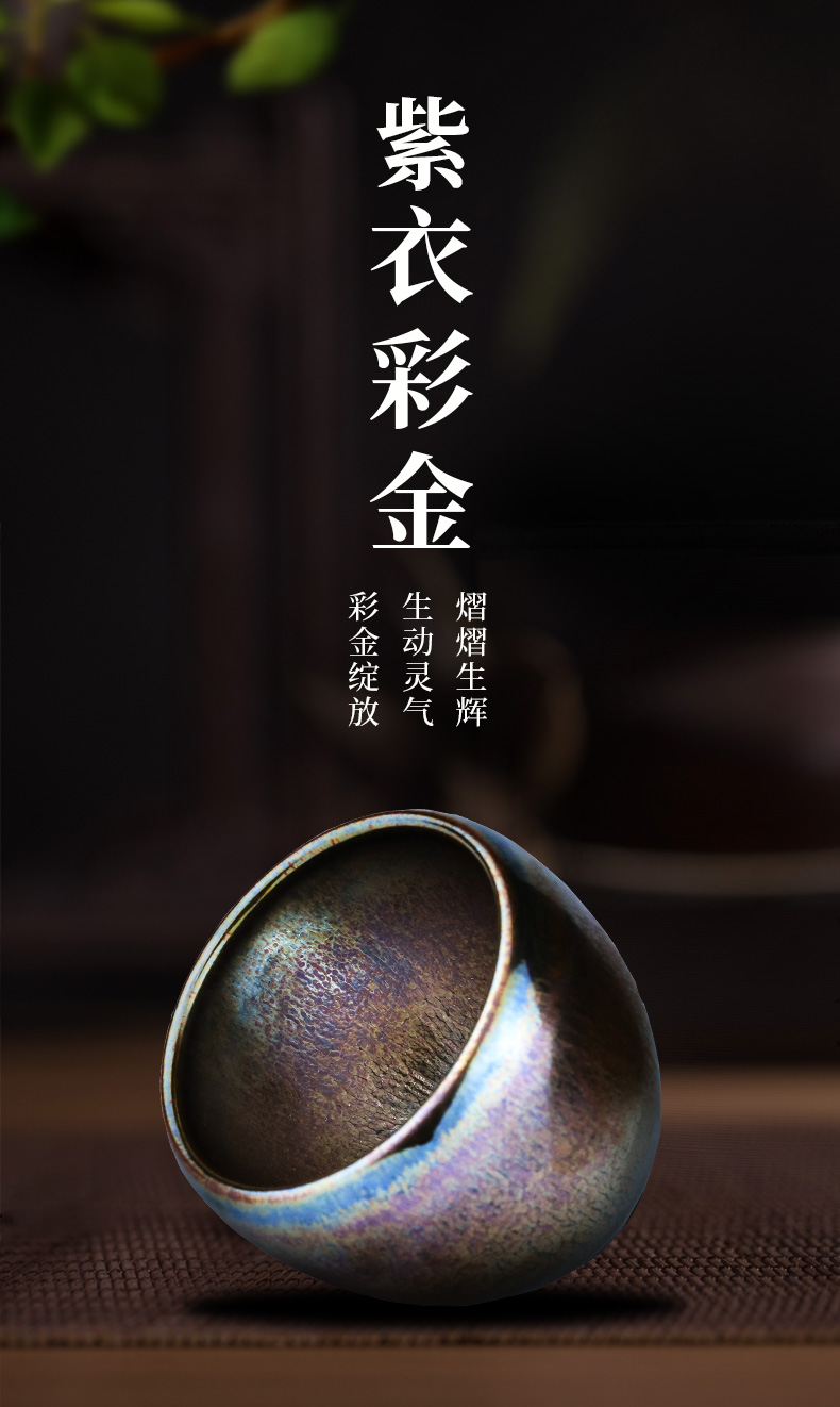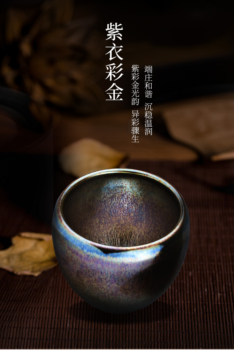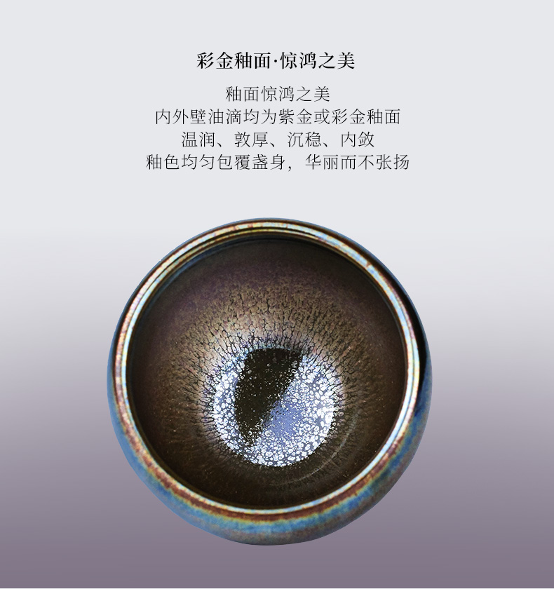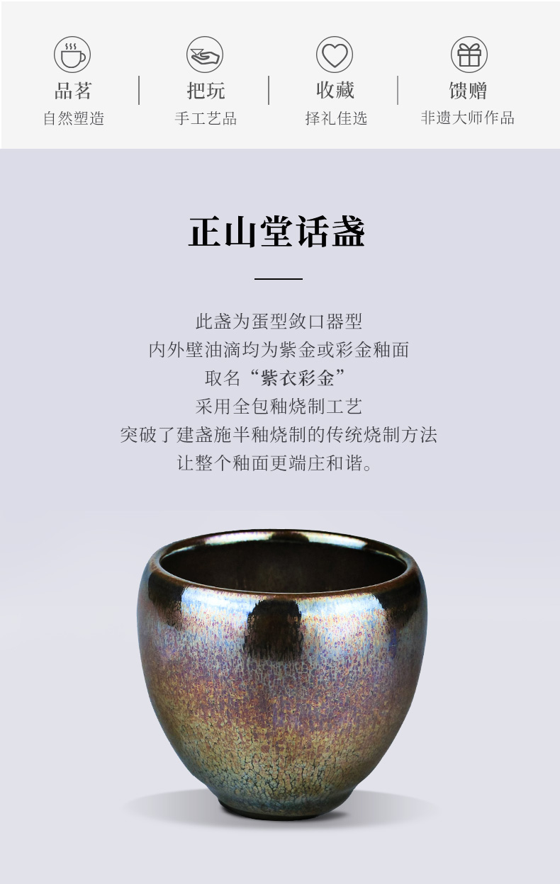 正山堂紫衣彩金建盏纯手工全包釉100ml 品茗杯 茶杯 主人杯茶具