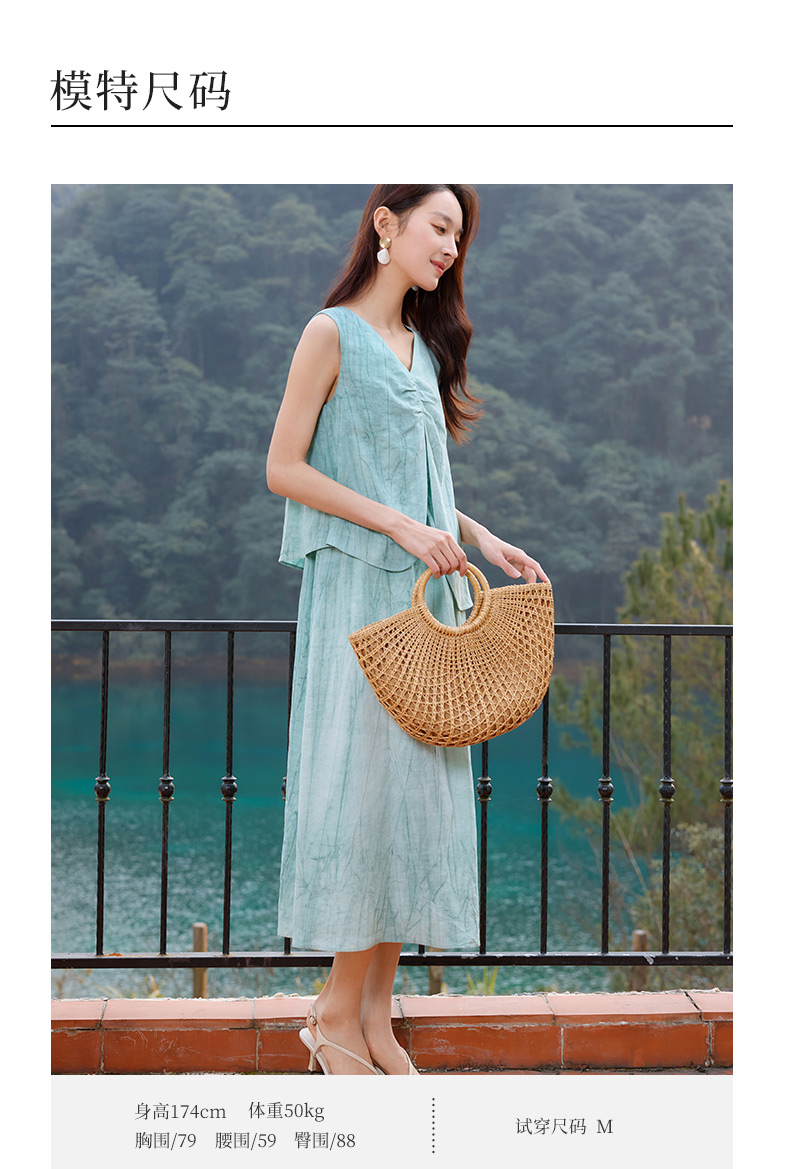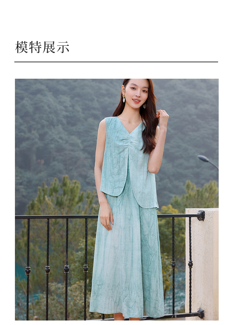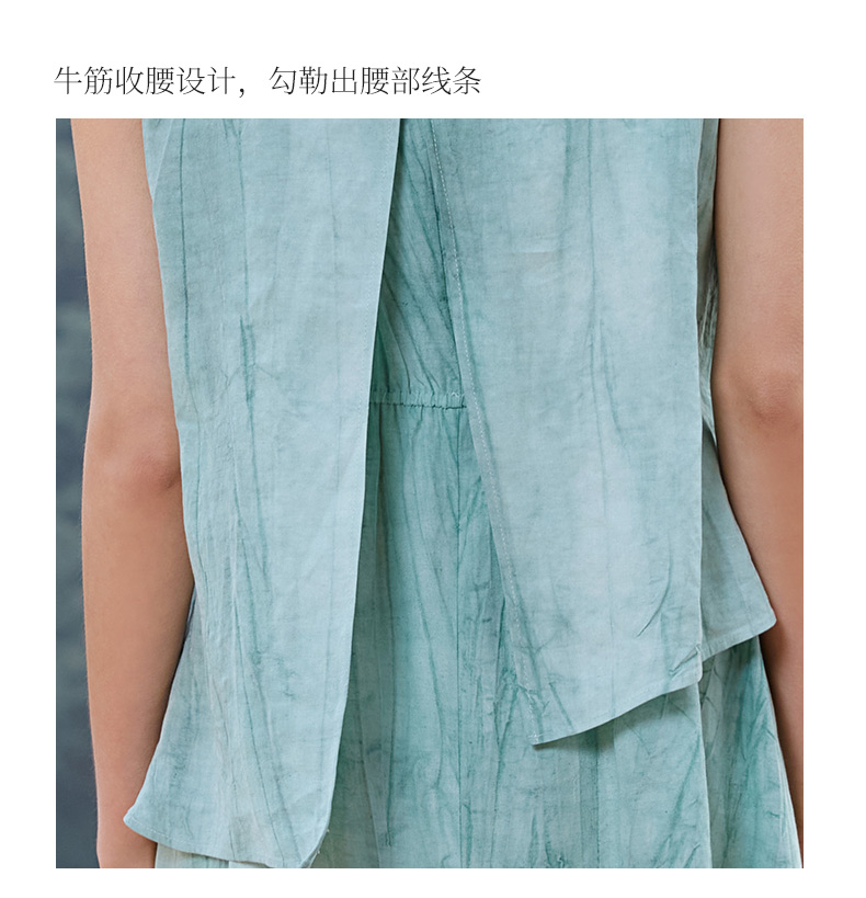 玳莎无袖假两件小众设计感收腰显瘦炒色天丝亚麻连衣裙25夏季新款 FB35002