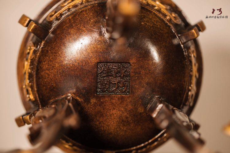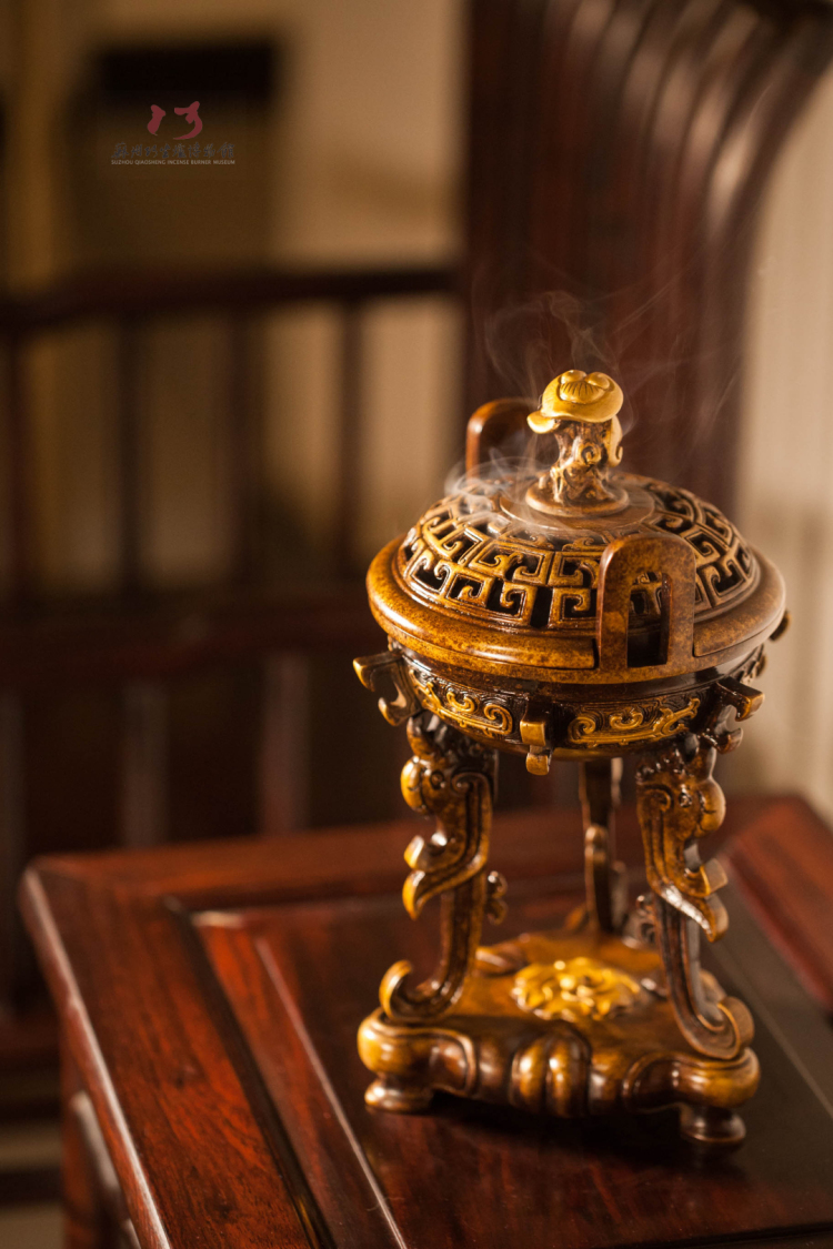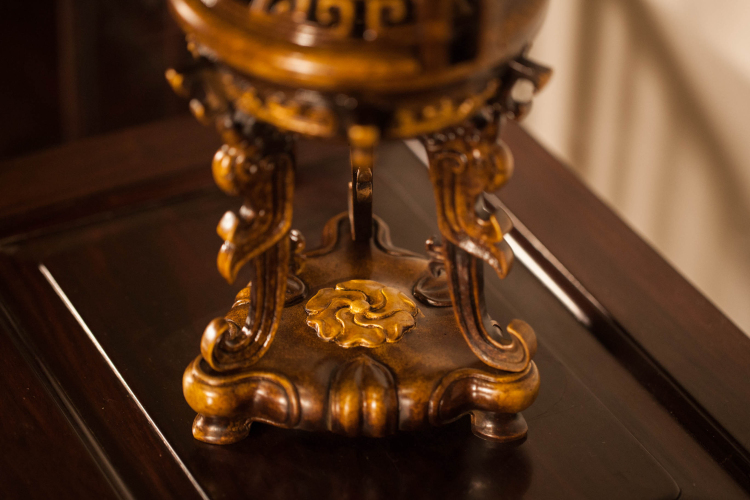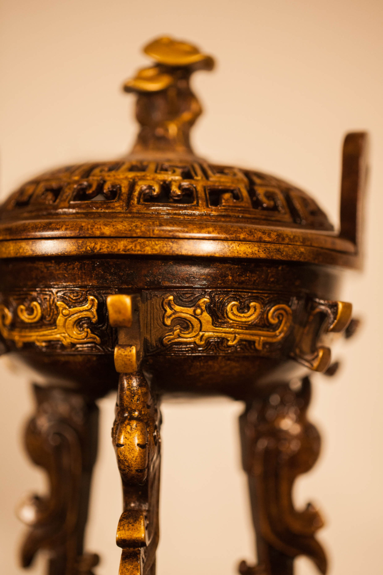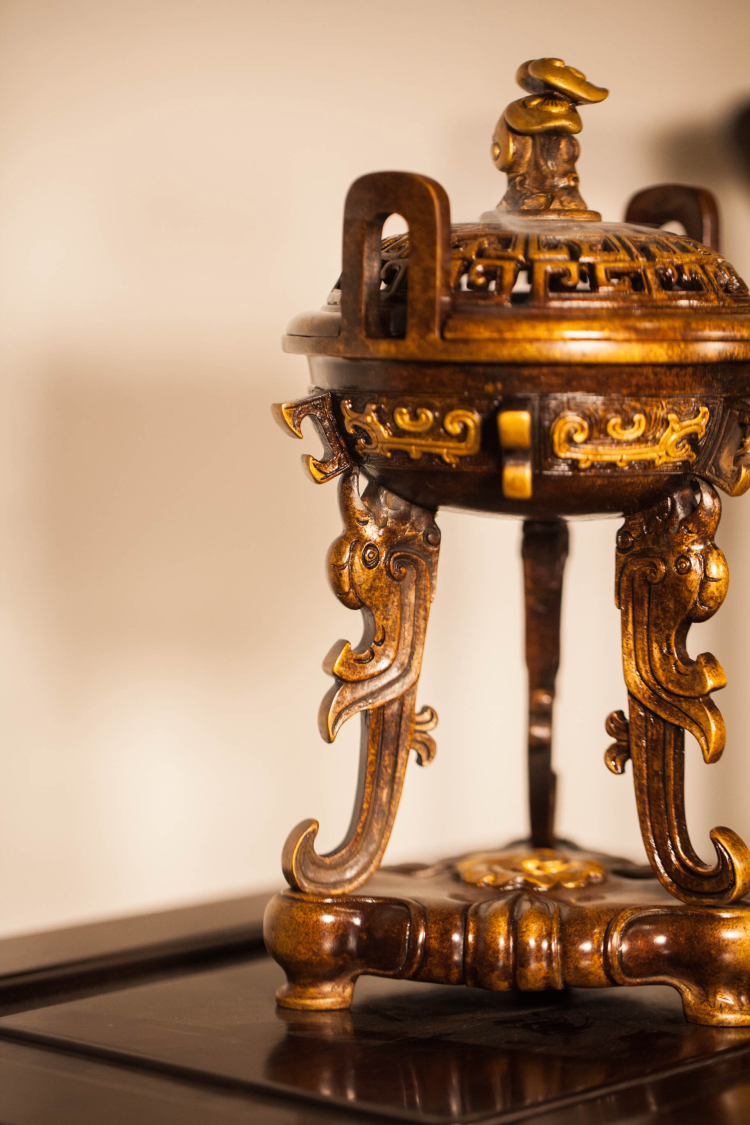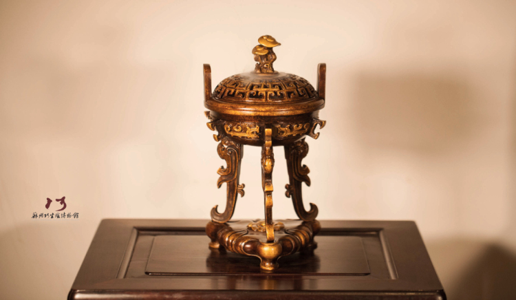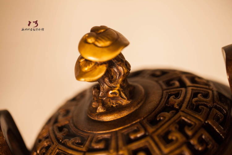 陈巧生制 c374灵芝钮三足鼎熏炉 铜炉香炉摆件