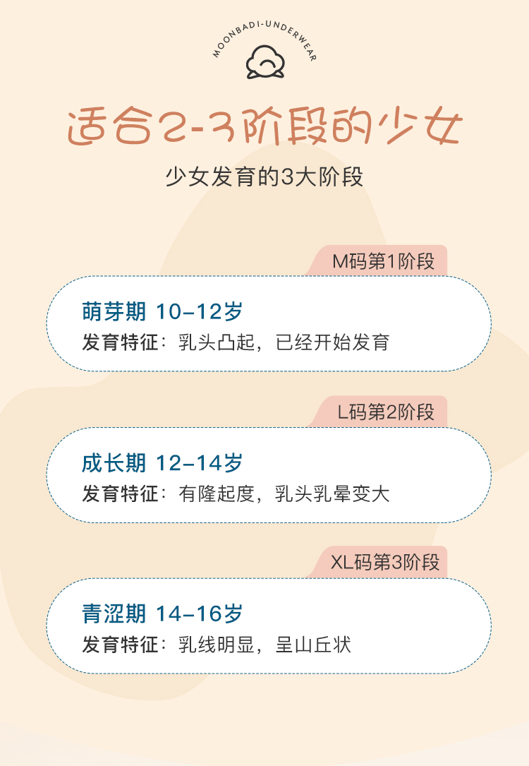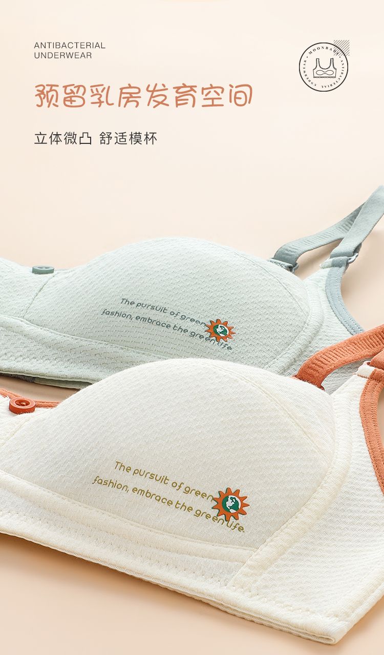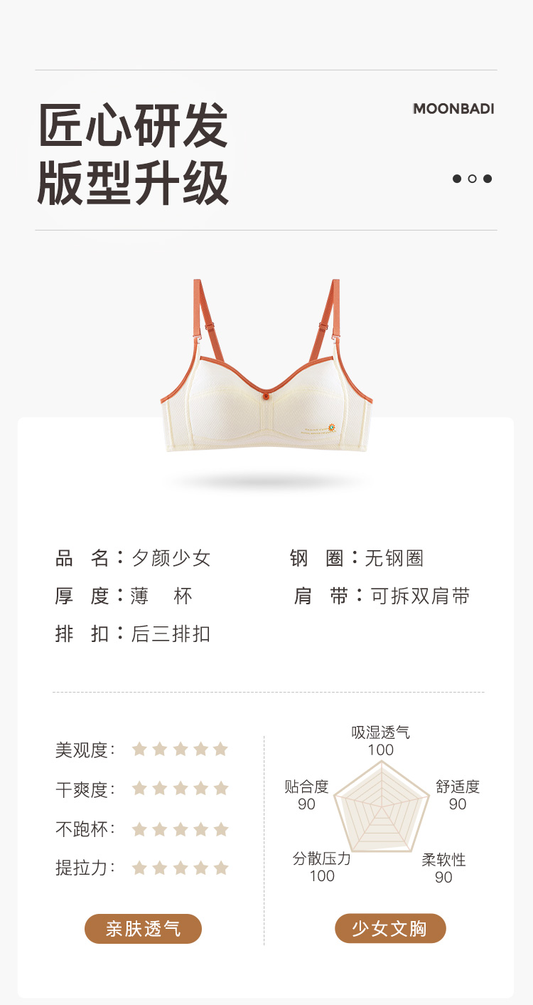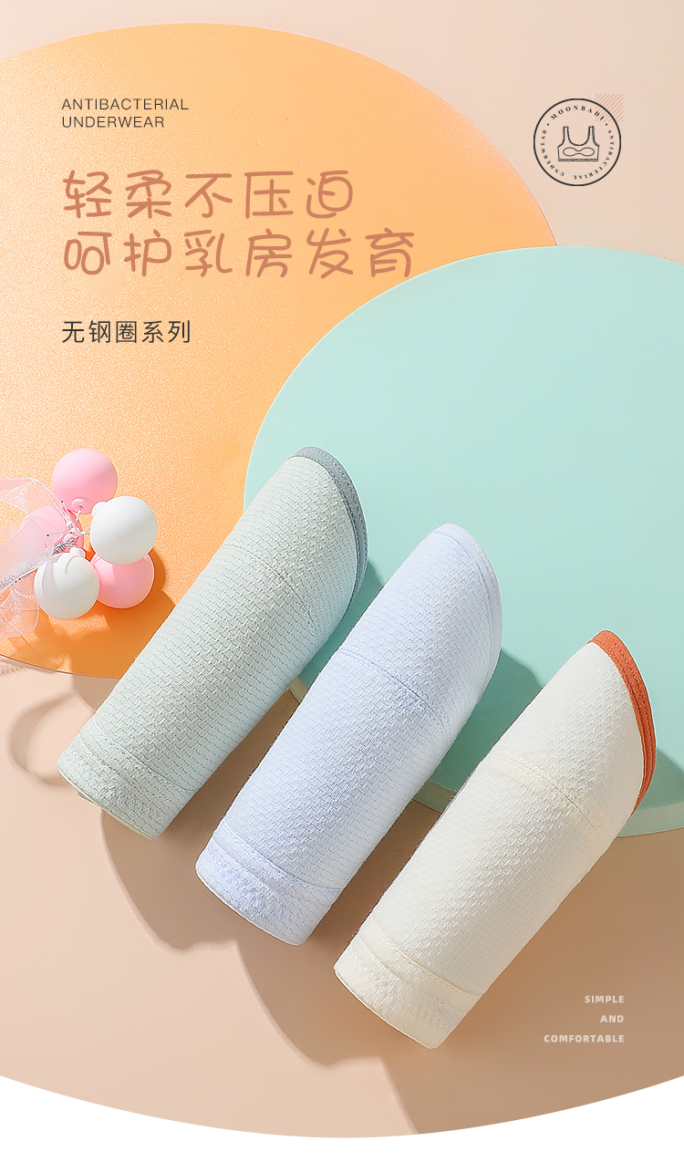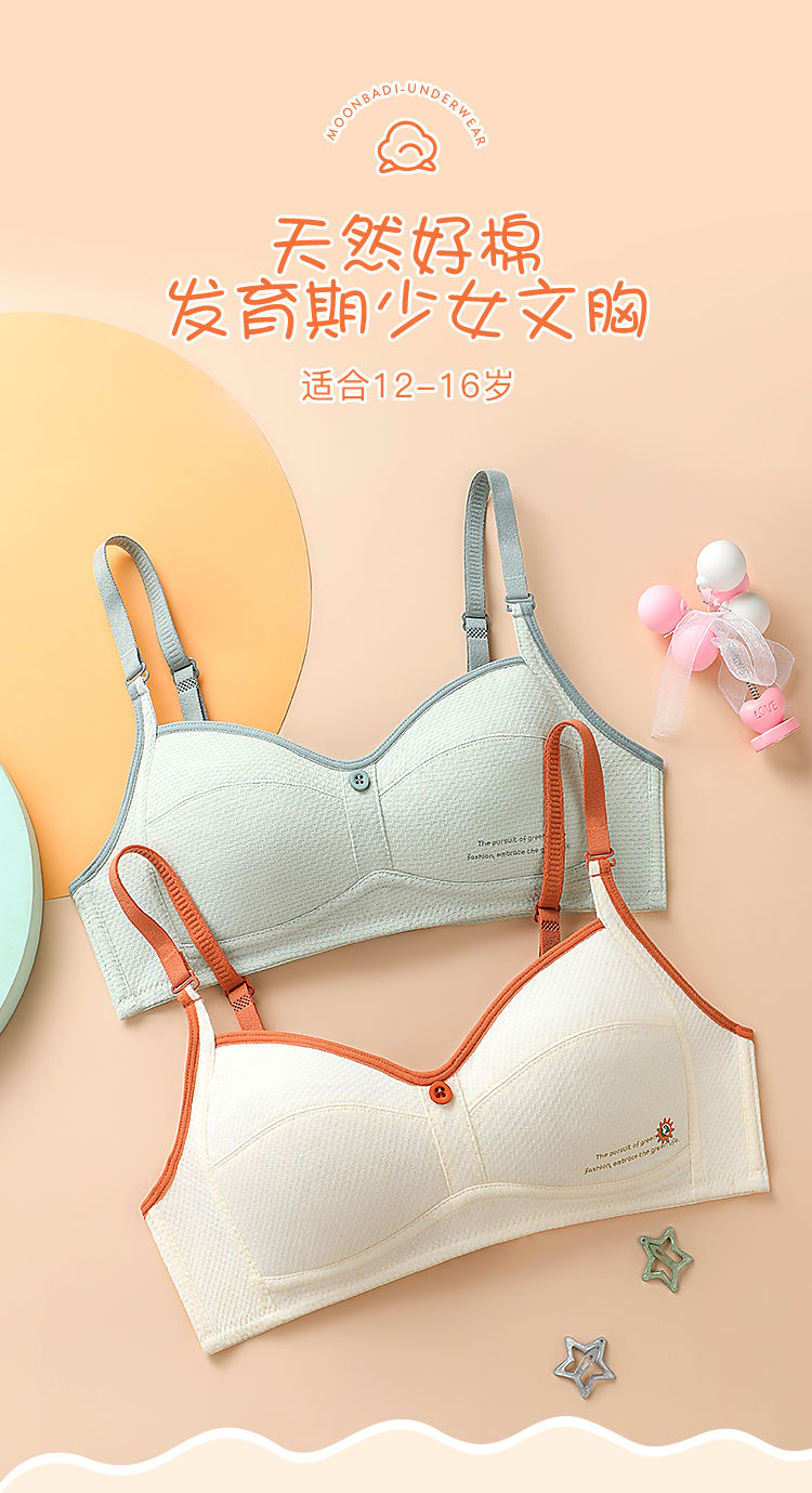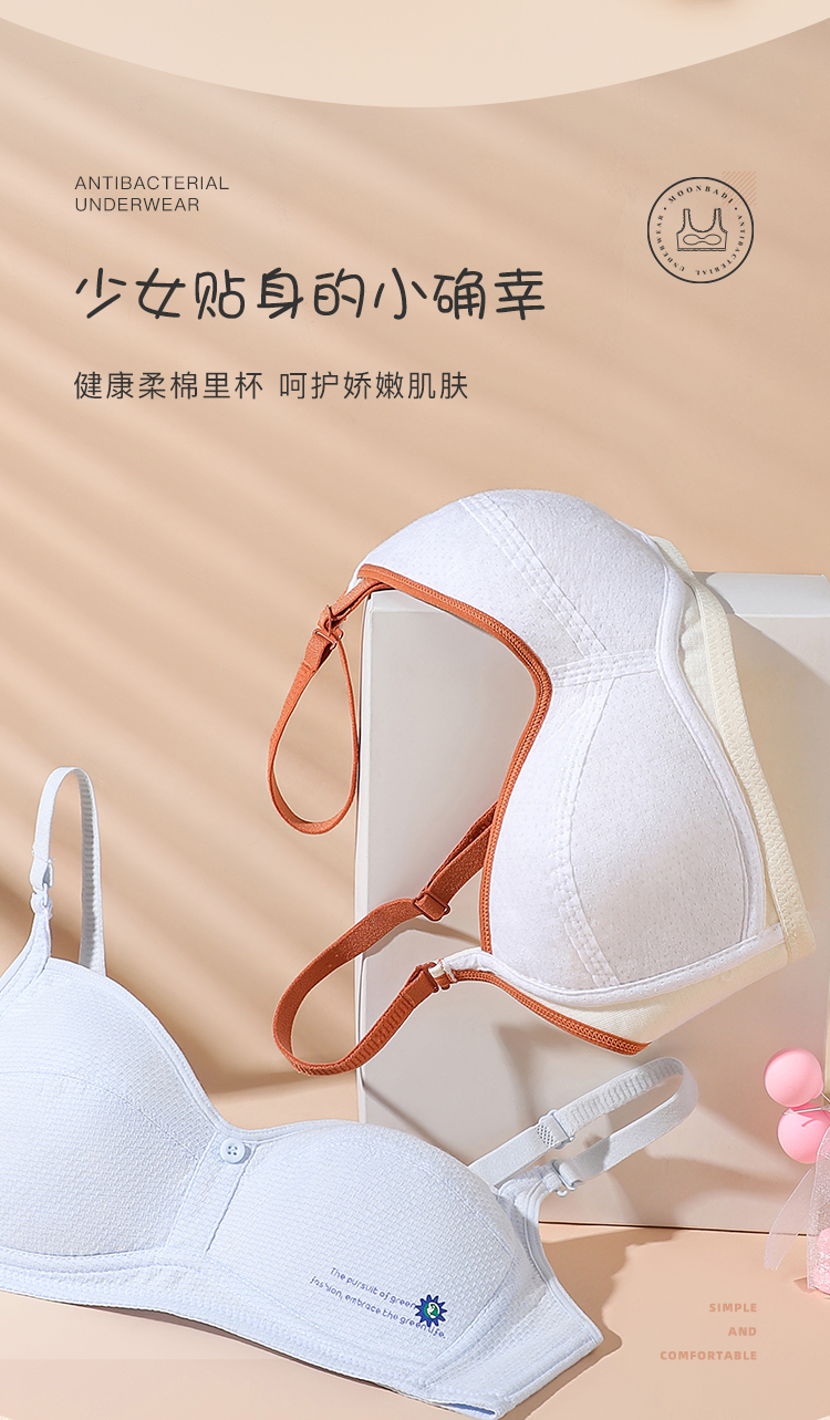 梦芭蒂棉柔养护防凸点高弹减压少女内衣初中无钢圈背心式夕颜少女文胸