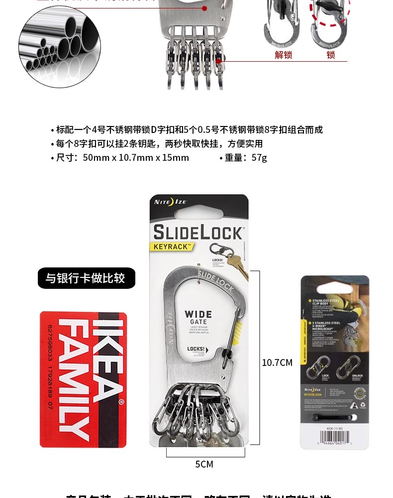 美国奈爱niteize大耳垂钥匙扣带锁钥匙扣8字扣挂扣S锁扣钥匙圈