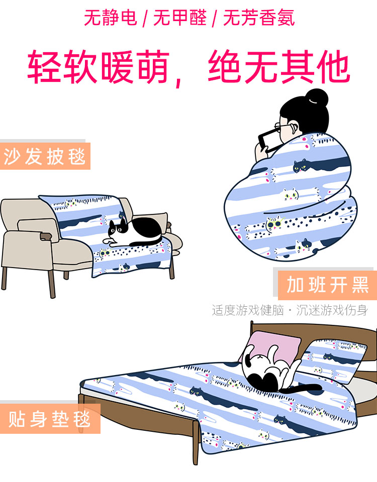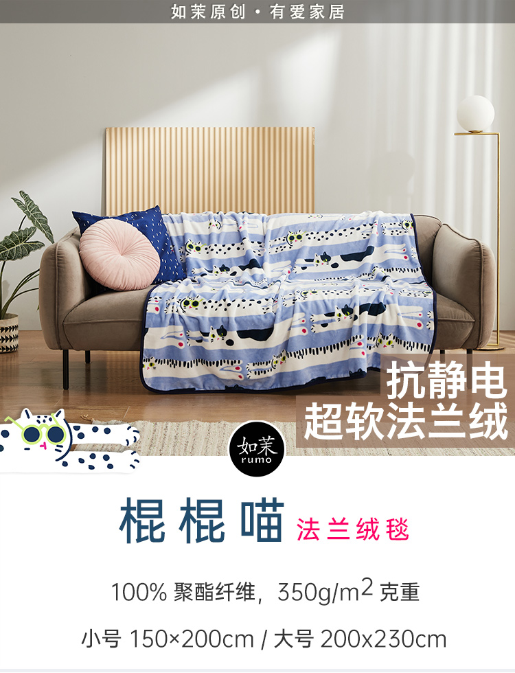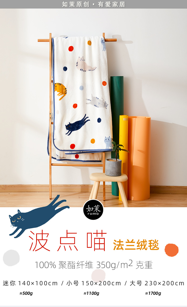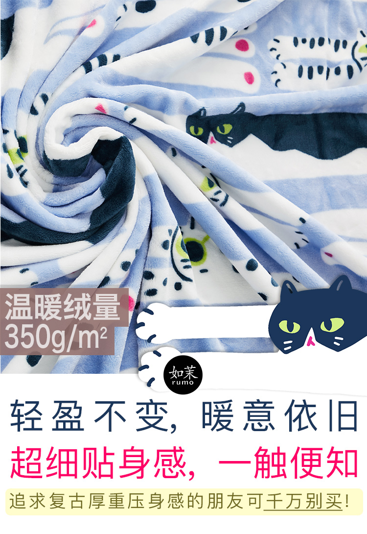 【幸运土猫】多款!如茉法兰绒单人宿舍空调毯休闲毯夏被毛毯无静电原创设计