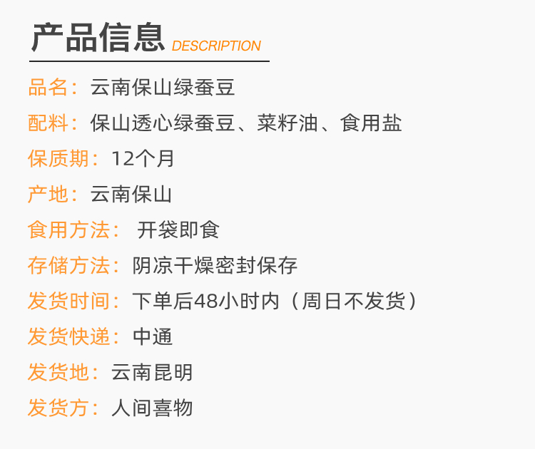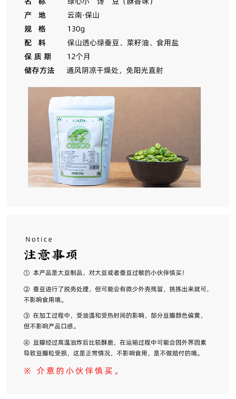 人间喜物 云南保山绿心蚕豆 小零食 130g/袋
