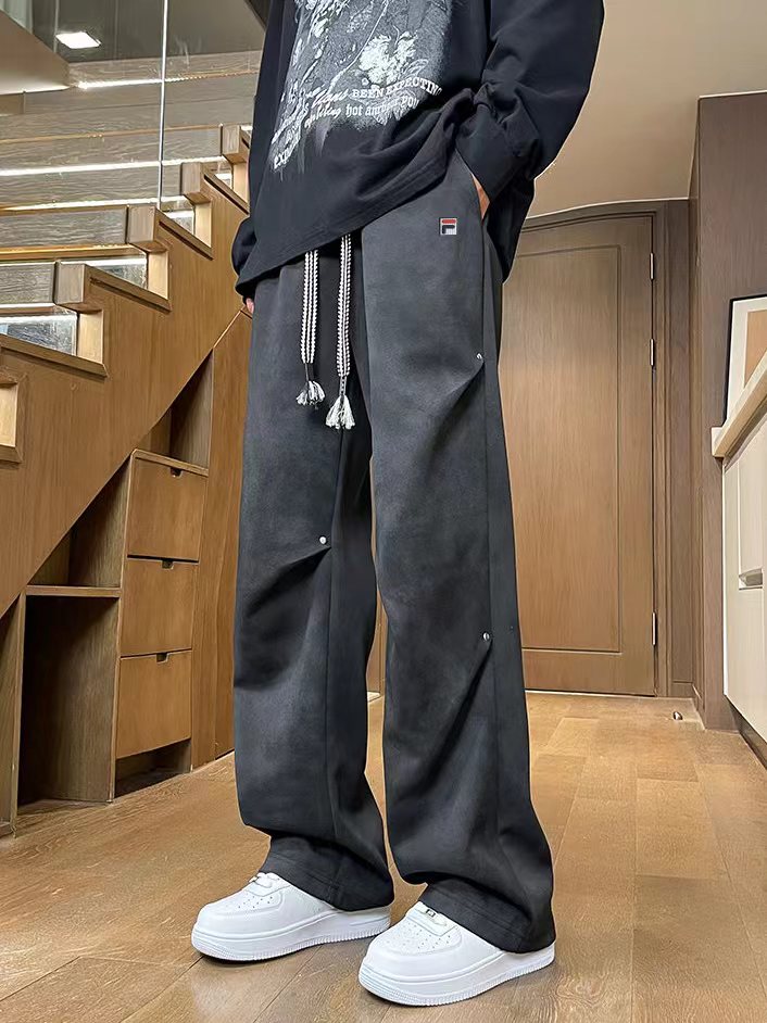 加绒新款阔腿直筒脏脏裤情侣款卫裤。 暗纹针织裤重磅推出,爆款推荐,直筒的版型,更为修饰腿型,拉伸腿长,不臃肿,炒鸡百搭的一款神裤,大厂跟单款,秋季供货不断,必不可少的一款御暑百搭卫裤,情侣款,品质推荐