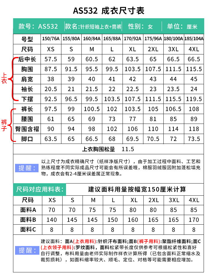 裁缝学苑AS532圆领T恤纸样阔腿裤做衣服打版裁剪样板
