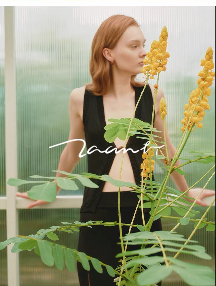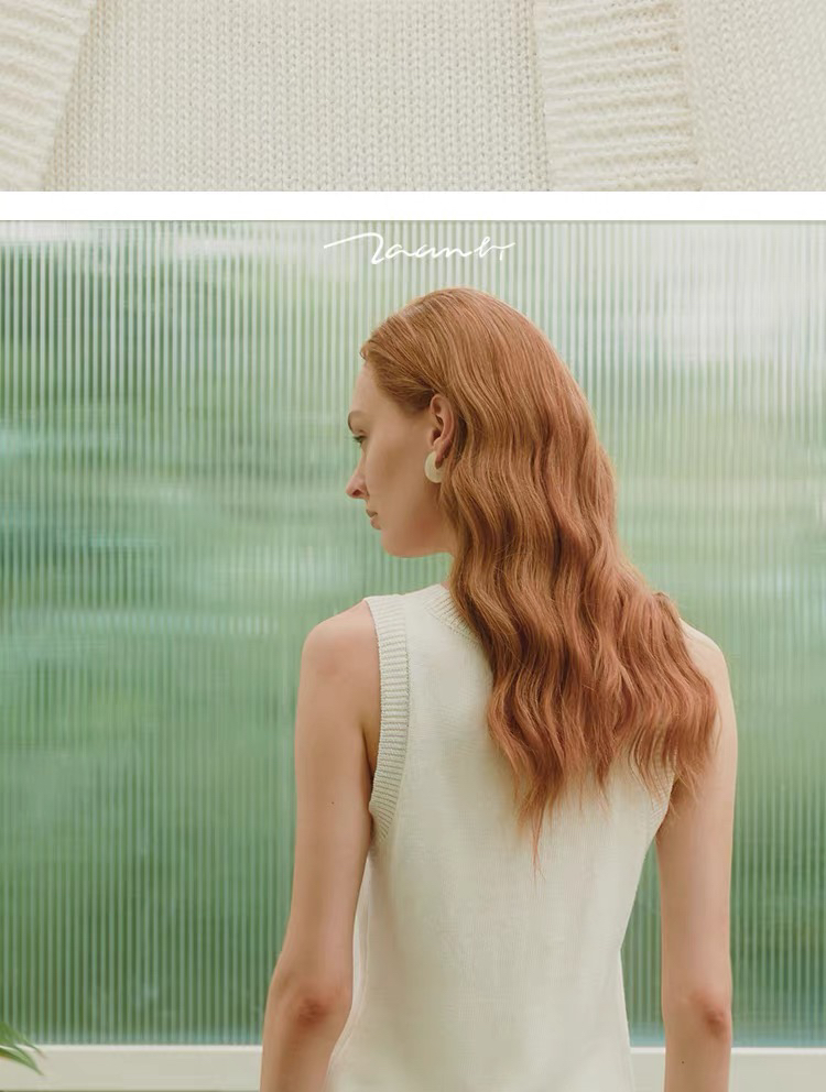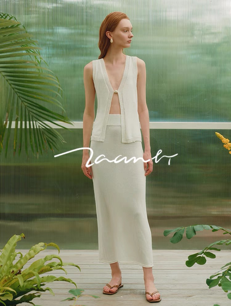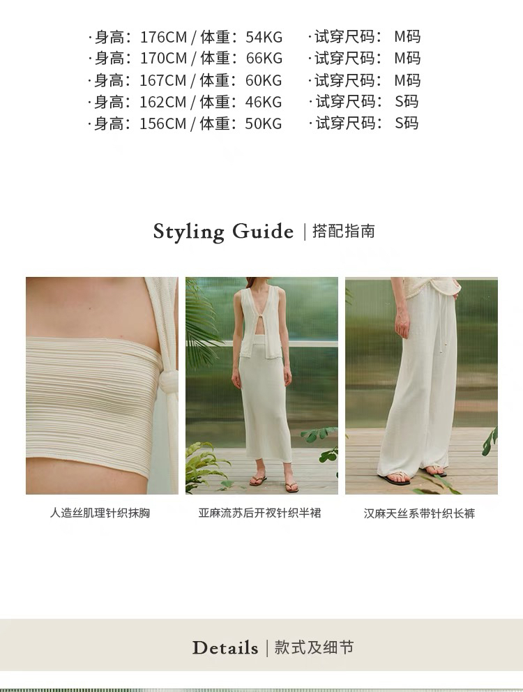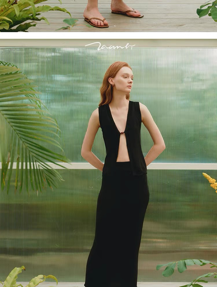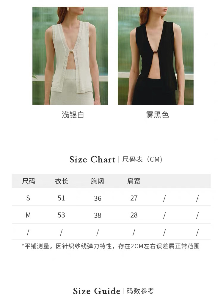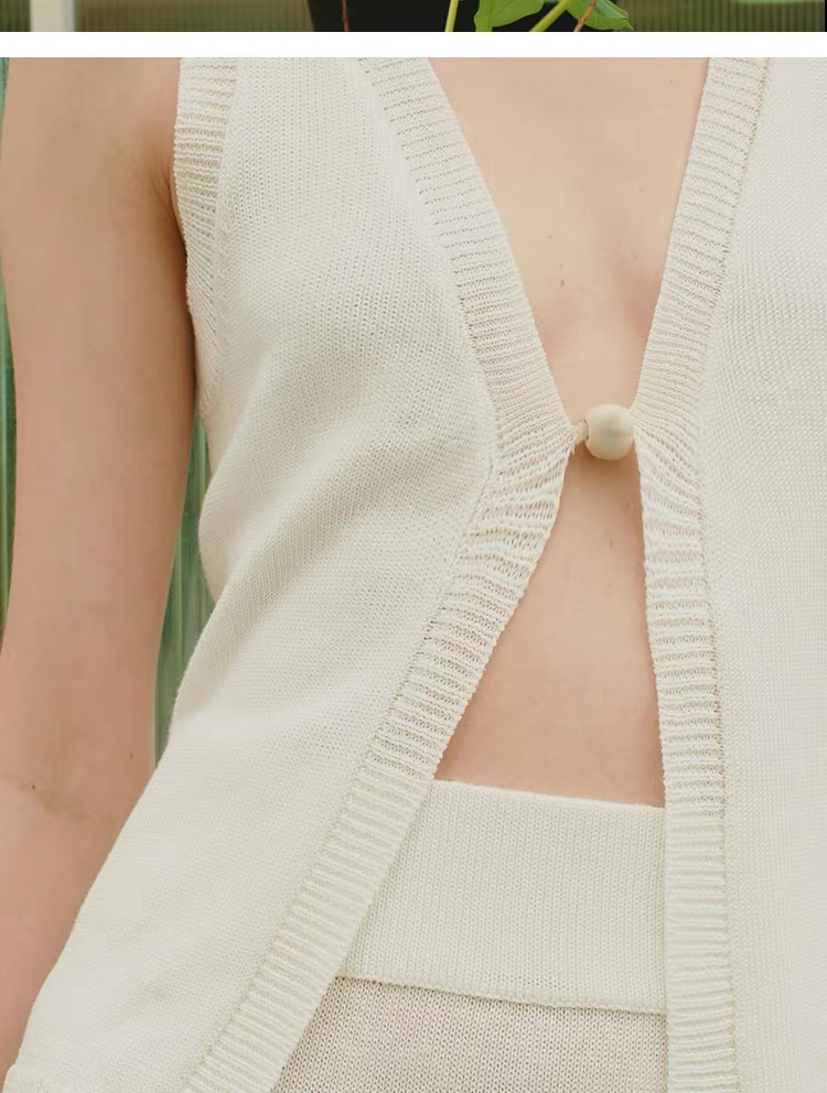 ZAANLI|ZNSS25042 亚麻粘纤微光串珠马甲针织背心 [ 浅银白 / 雾黑 ]