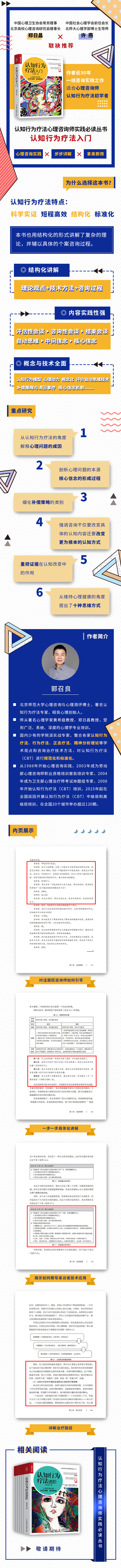 郭召良 ◎ 北京师范大学心理咨询与心理测评博士,**名认知行为疗法专家,昭良心理创始人。 ◎ 师从**名心理学家黄希庭教授、郑日昌教授,受到广泛、系统、深度的心理学专业培训。 ◎ 国内少有的学院派实战专家,整合各家认知行为疗法、行为疗法、正念疗法、精神分析理论等学术观点和咨询治疗技术方法,对认知行为疗法(CBT)进行规范化和标准化。 ◎ 从1988年开始心理咨询实践,2003年成为劳动部心理咨询师职业资格培训首批培训专家,2004年成为卫生部心理治疗师考试命题组专家,2008年开始认知行为疗法(CBT)培训,2015年起在全国巡回开展认知行为疗法(CBT)中级班和*级班培训,在全国20个城市举办超过120期。