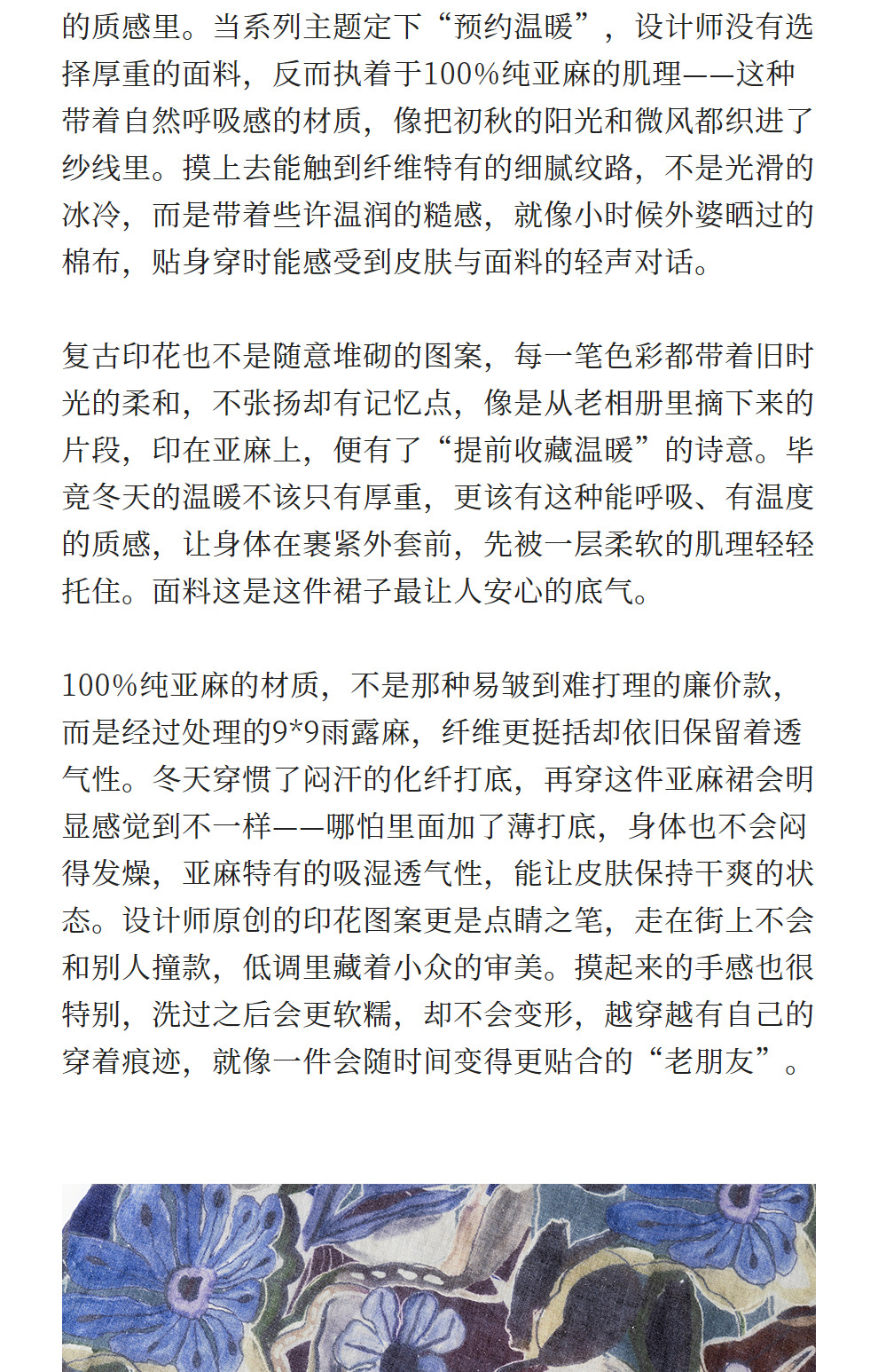 以天然亚麻为载体,融合热烈色彩与自在剪裁为身在城市、心怀远方的女性提供兼具美学与舒适的旅行着装