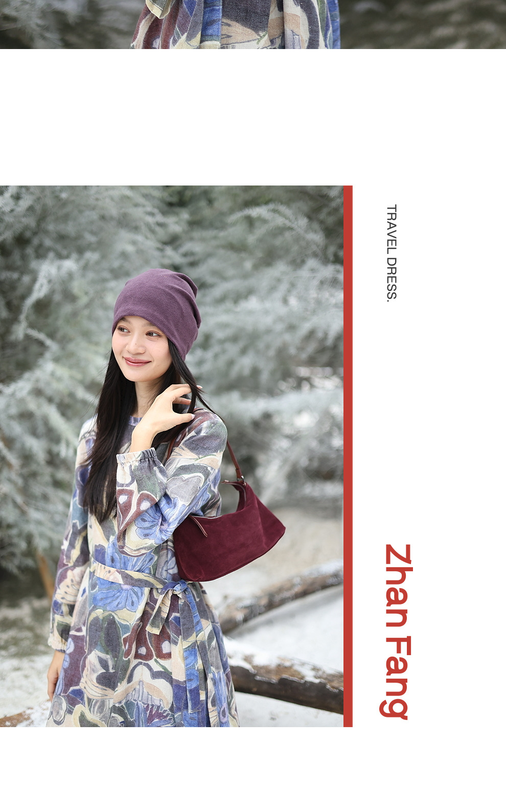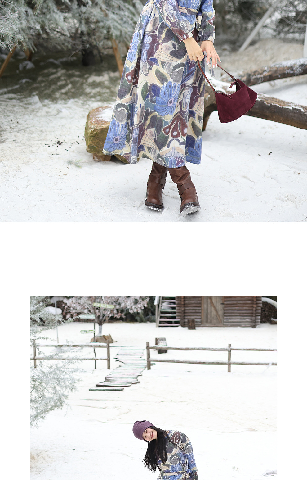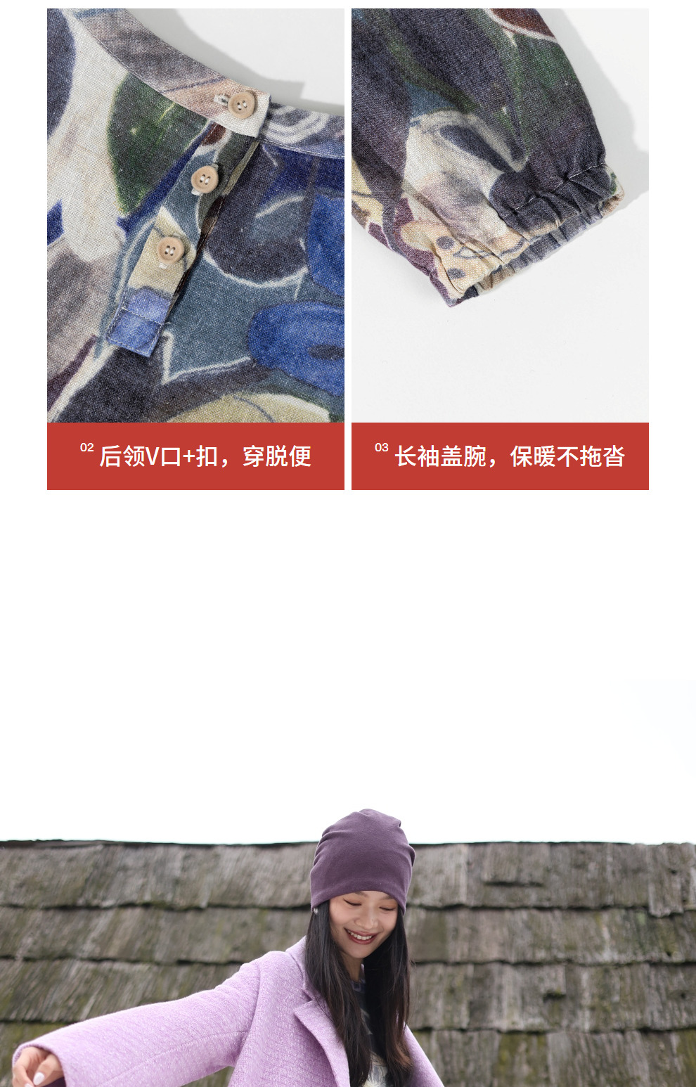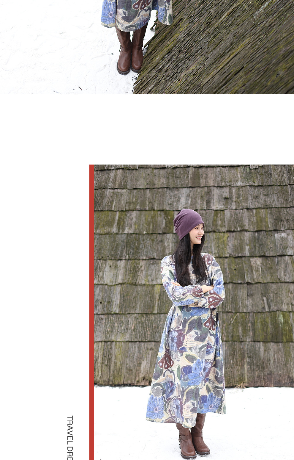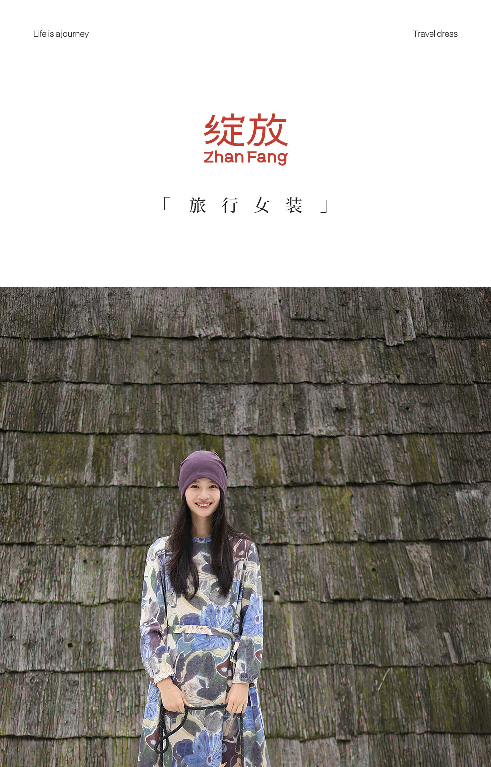 绽放764朵/新款文艺9*9雨露麻复古印花圆领秋冬百搭长袖连衣裙女