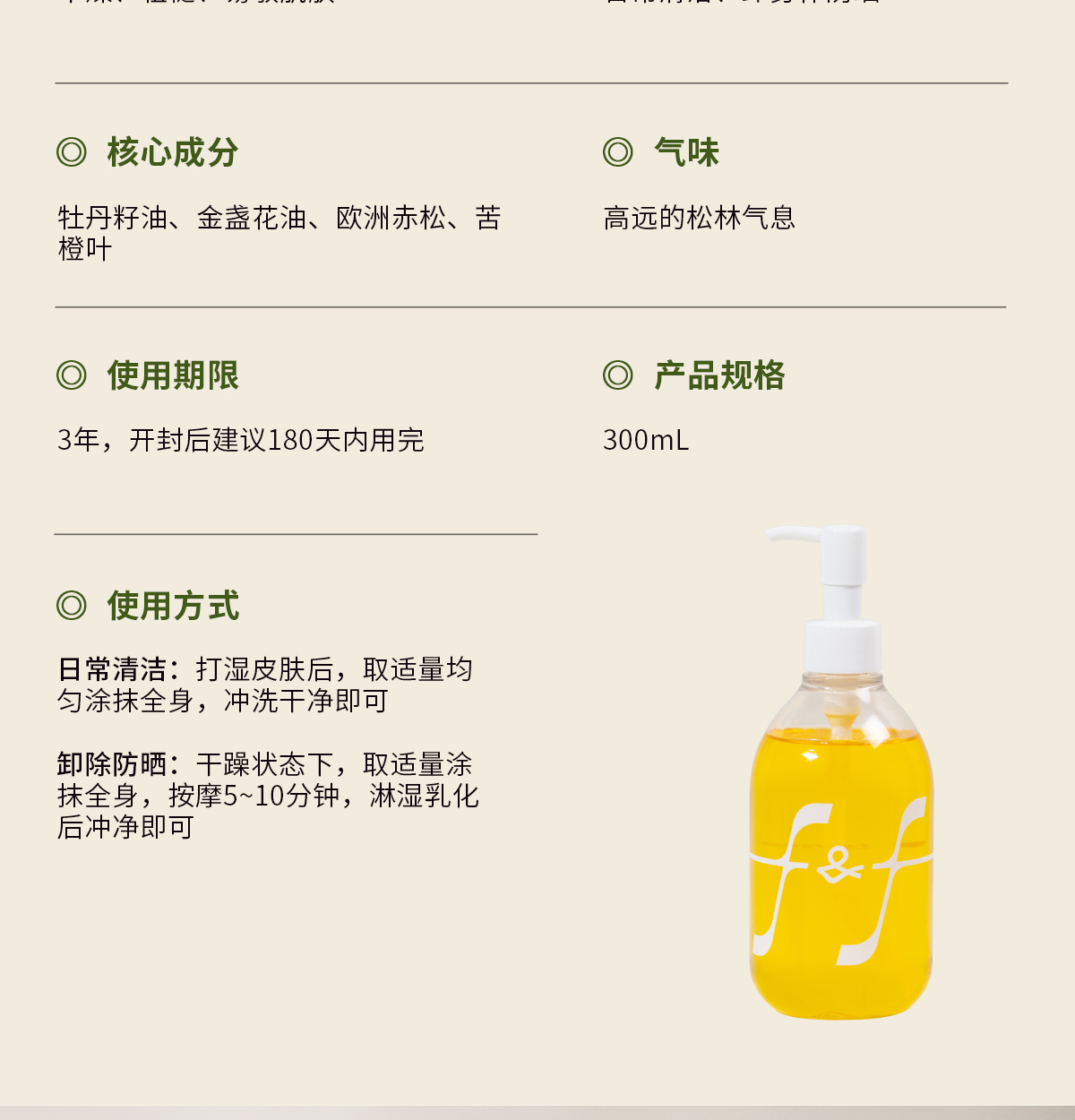 枕草子f&f系列青松沐浴油300ml,以油溶油,净肤更润肤