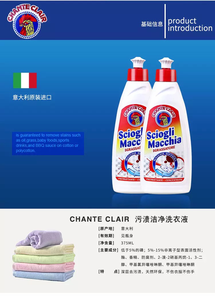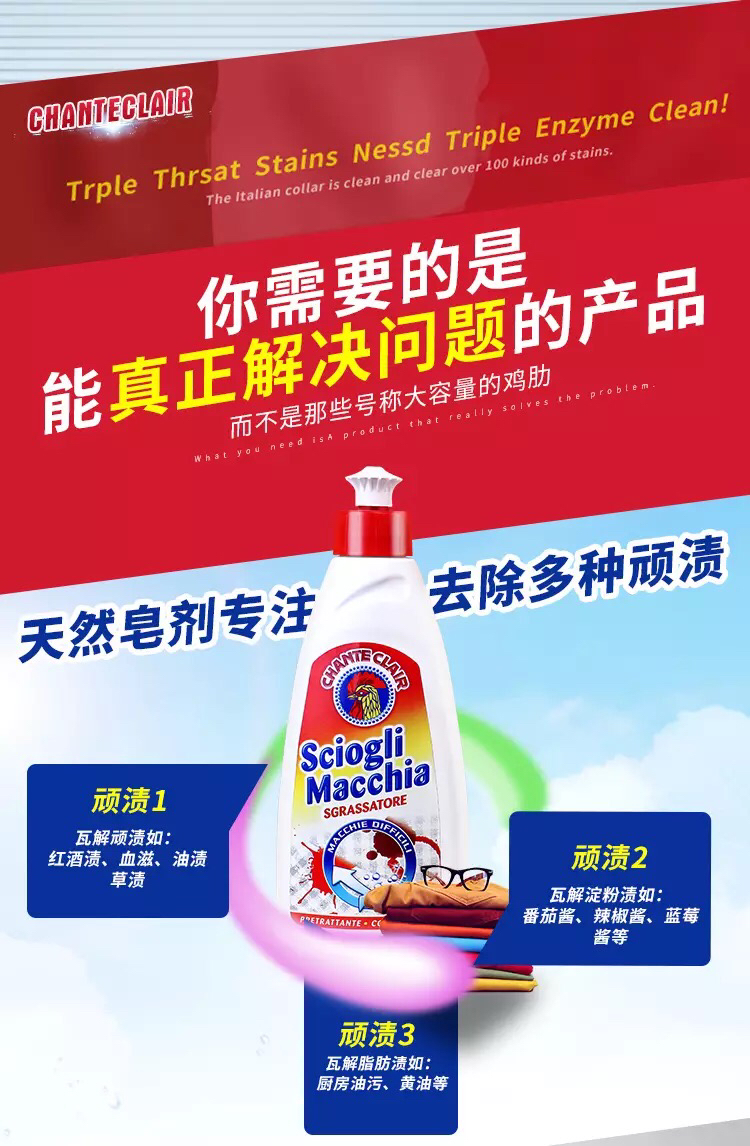 【天然皂基 去顽固污渍】意大利公鸡头管家衣领净洗衣 袖口 强力去污渍 顽固污渍375ml
