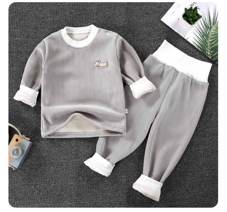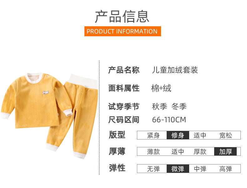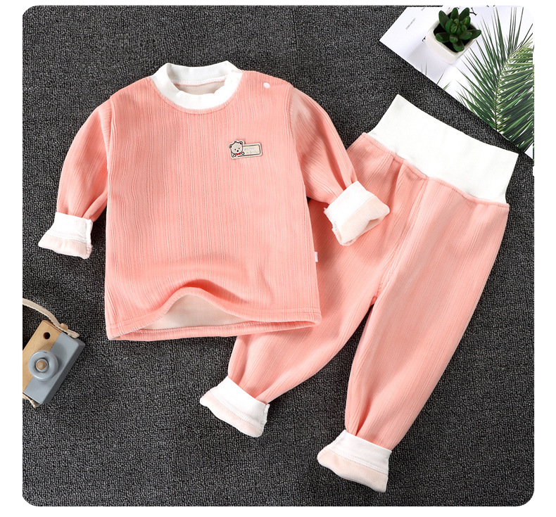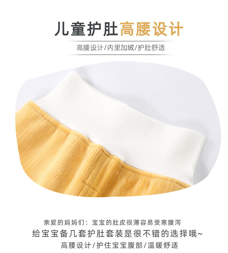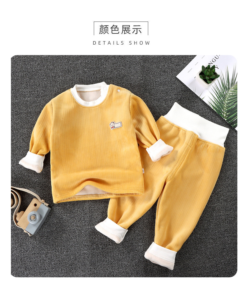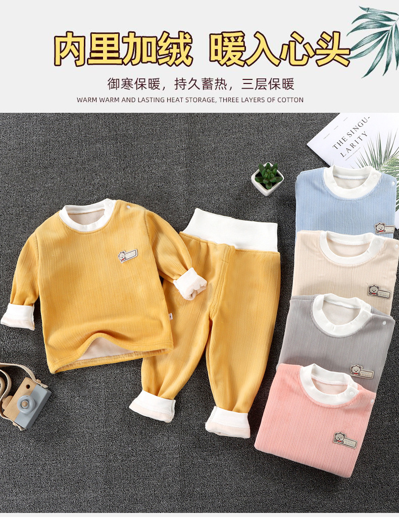 【舒适加绒高腰宝宝护肚】秋冬儿童保暖内衣套装宝宝高腰双面绒加厚秋衣秋裤婴儿护肚子睡衣