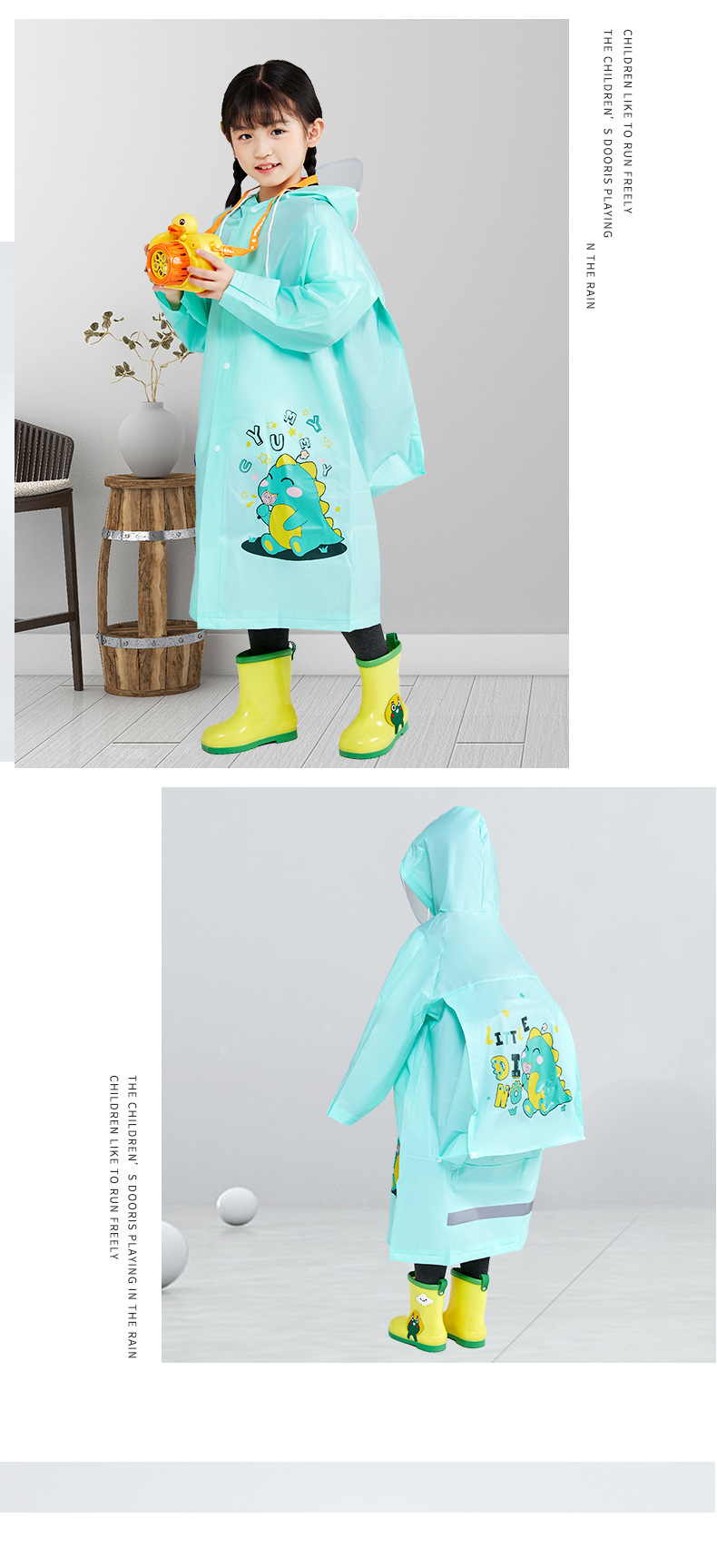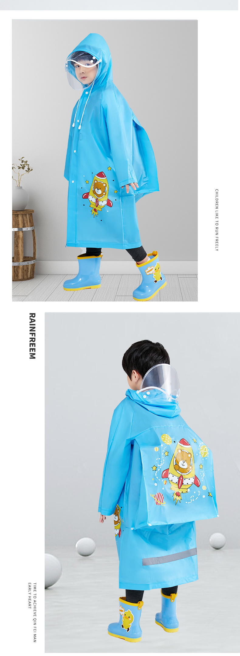 【全方位挡雨 穿上它 上下学不用愁】儿童雨衣卡通小学生上学雨衣儿童连体带书包位反光大童男女童雨衣