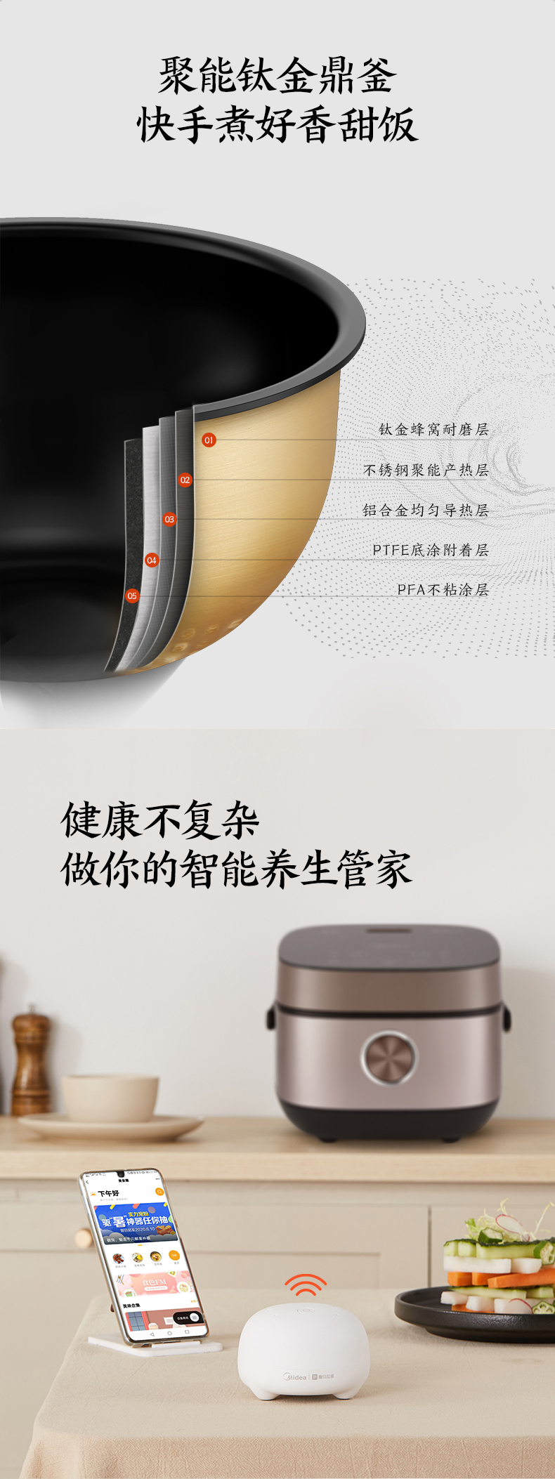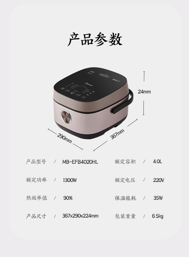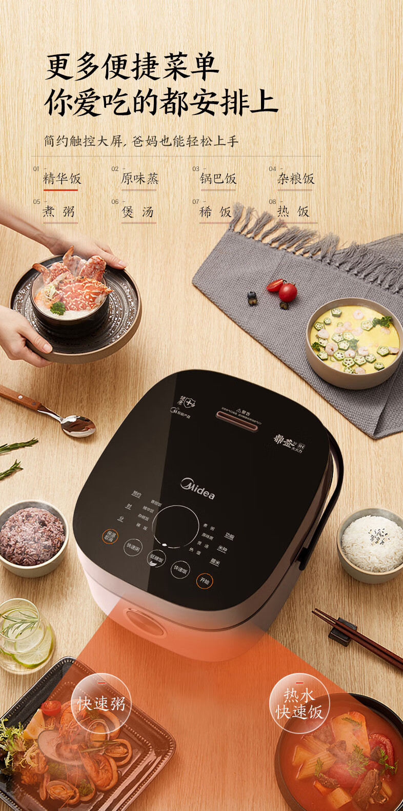 美的(Midea)美的(Midea)智能电饭煲立体IH电磁加热4升容量多功能钛金鼎釜煮饭锅MB-EFB4020HL