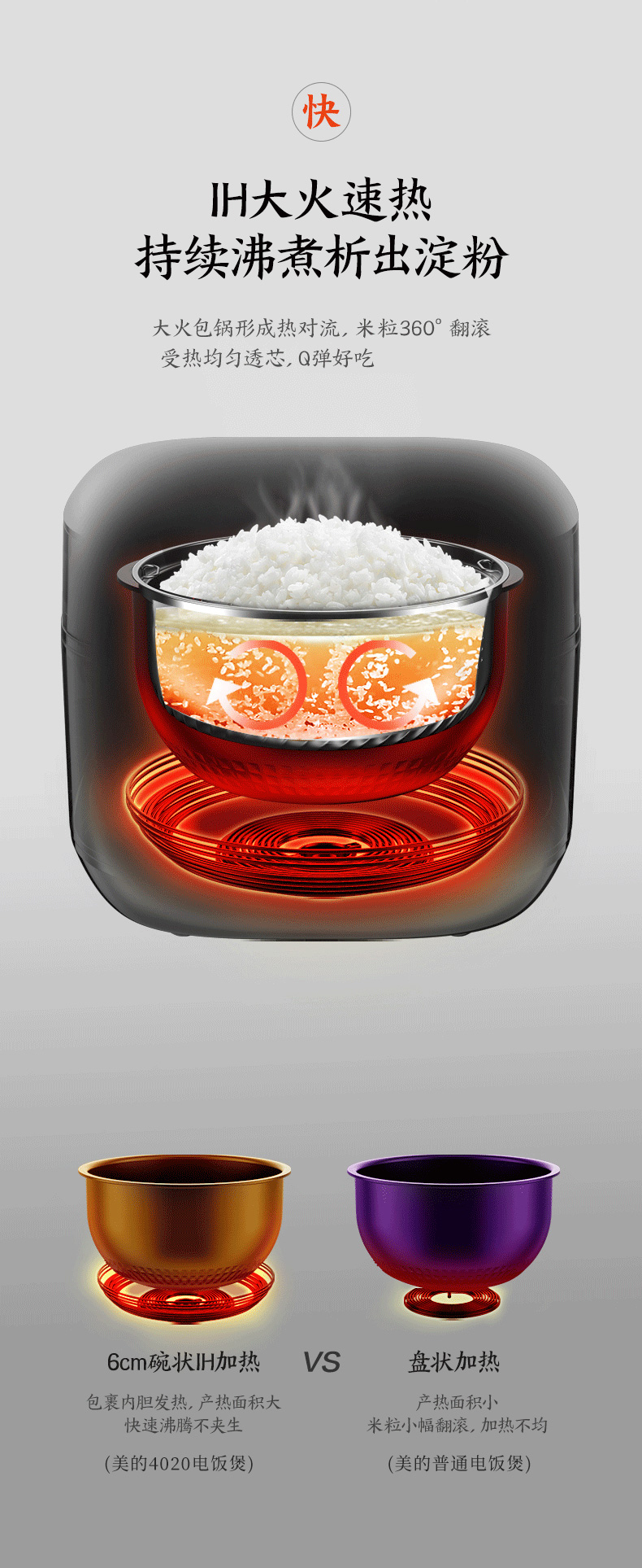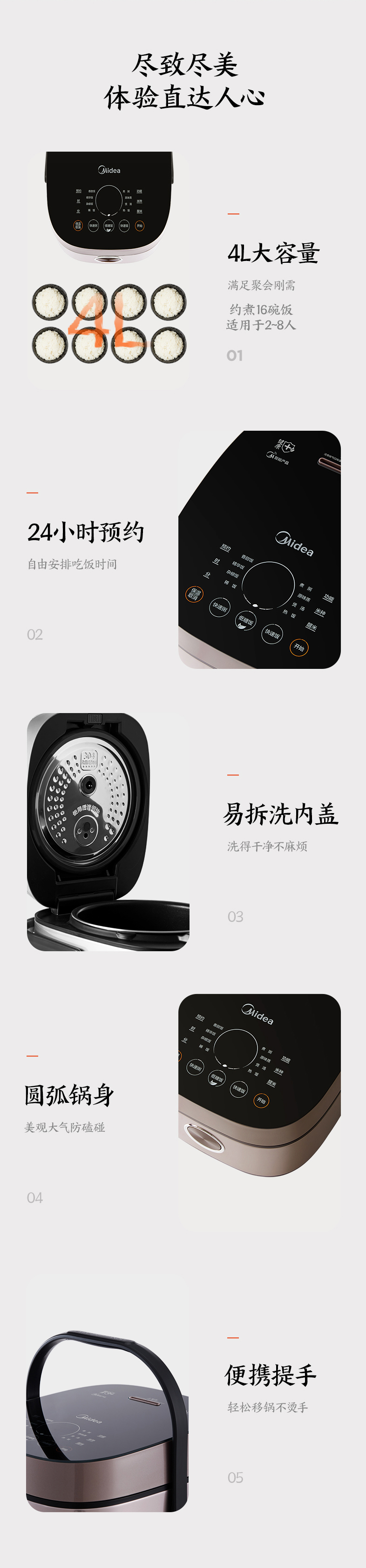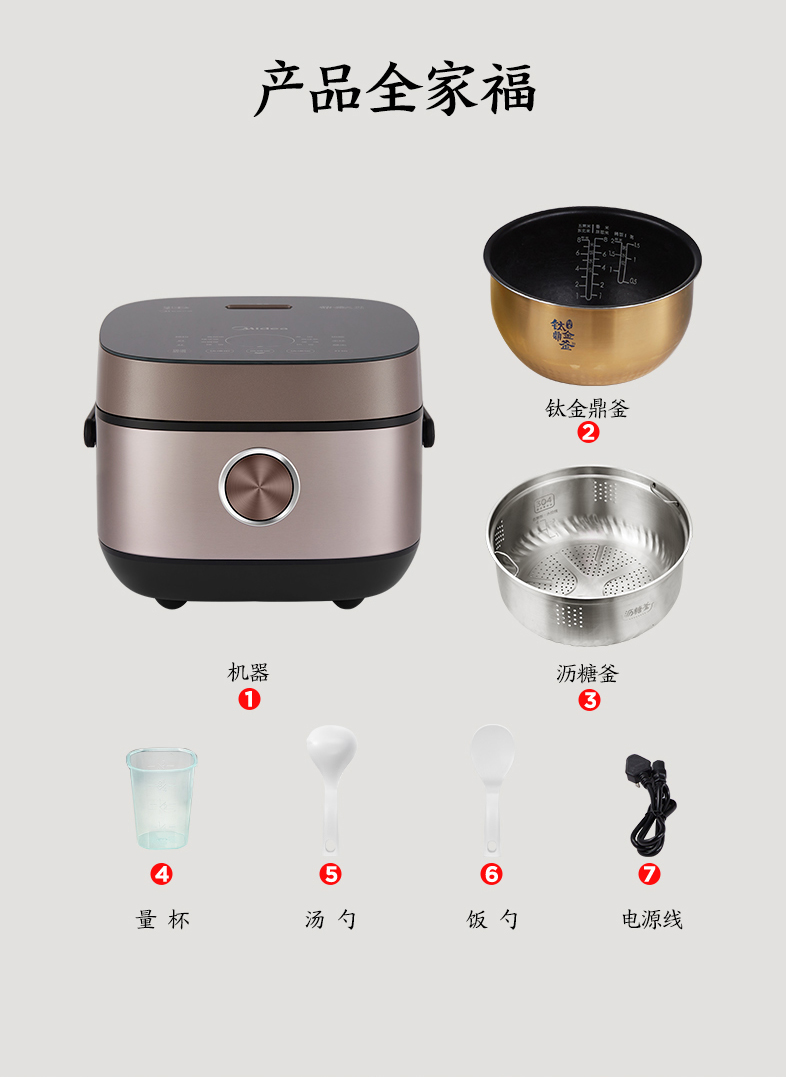 美的(Midea)美的(Midea)智能电饭煲立体IH电磁加热4升容量多功能钛金鼎釜煮饭锅MB-EFB4020HL