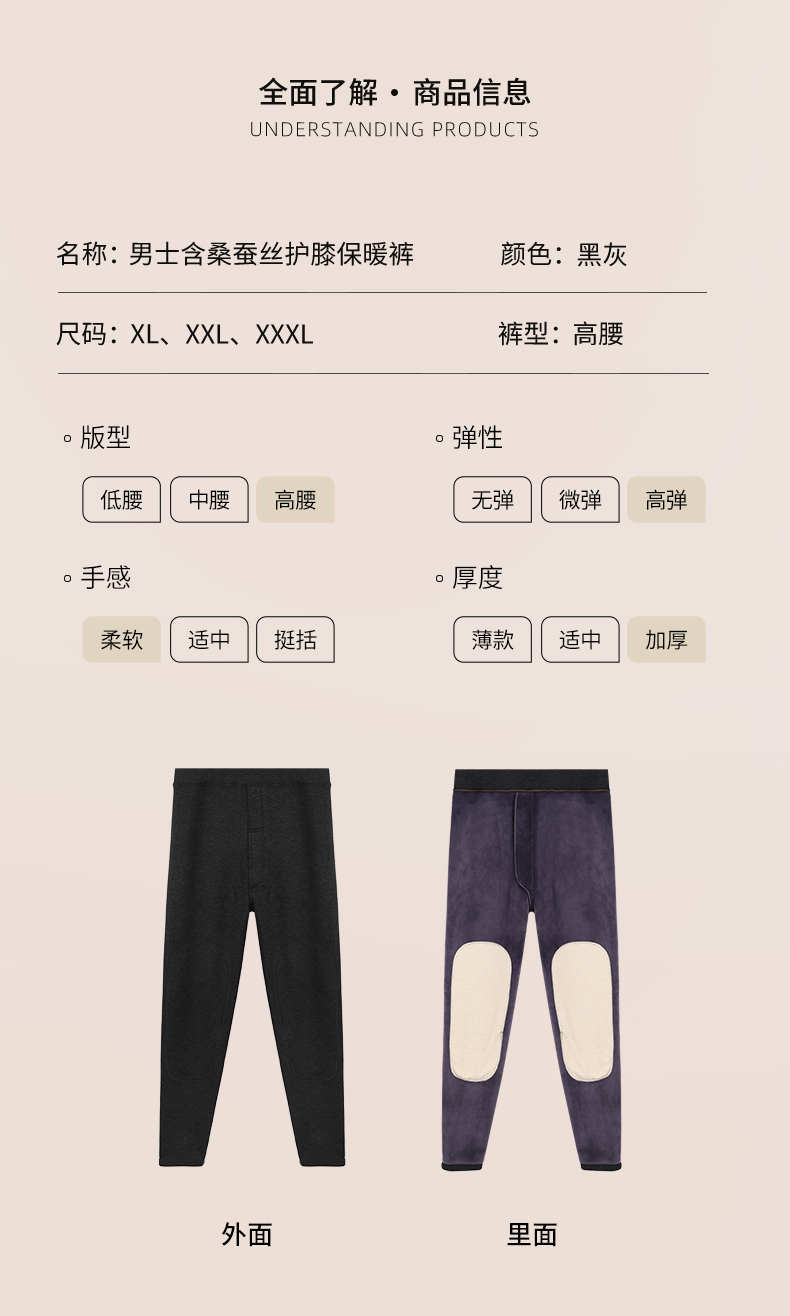 雅黛丽秋裤男士冬季护膝棉裤弹力修身打底裤男秋冬加绒加厚保暖裤