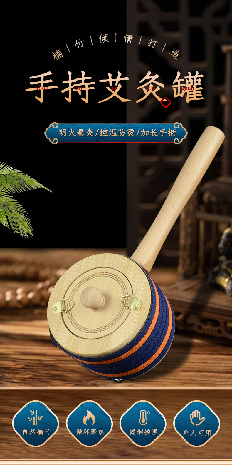 【天然楠竹❗️手持艾灸罐】便携式无烟悬灸盒,滤烟设计不呛鼻,旋转控温操作简易,金属内壁滤灰底网,家用熏蒸仪全身通用手持艾灸罐随身灸QQ
