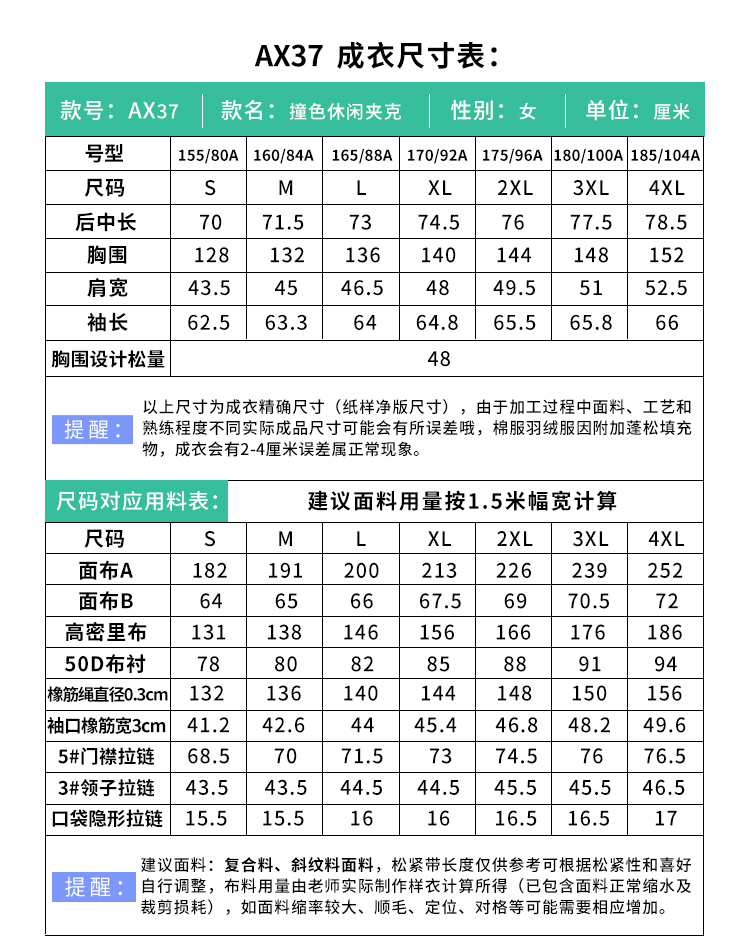 裁缝学苑AX37拼接棒球服纸样外套女装秋季新款上衣夹克衣服样板图