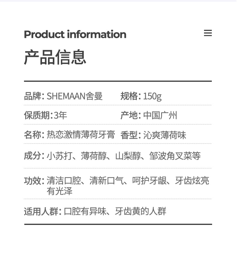 【牙膏】热恋激情薄荷牙膏150g炫亮牙齿清洁去渍健齿护龈