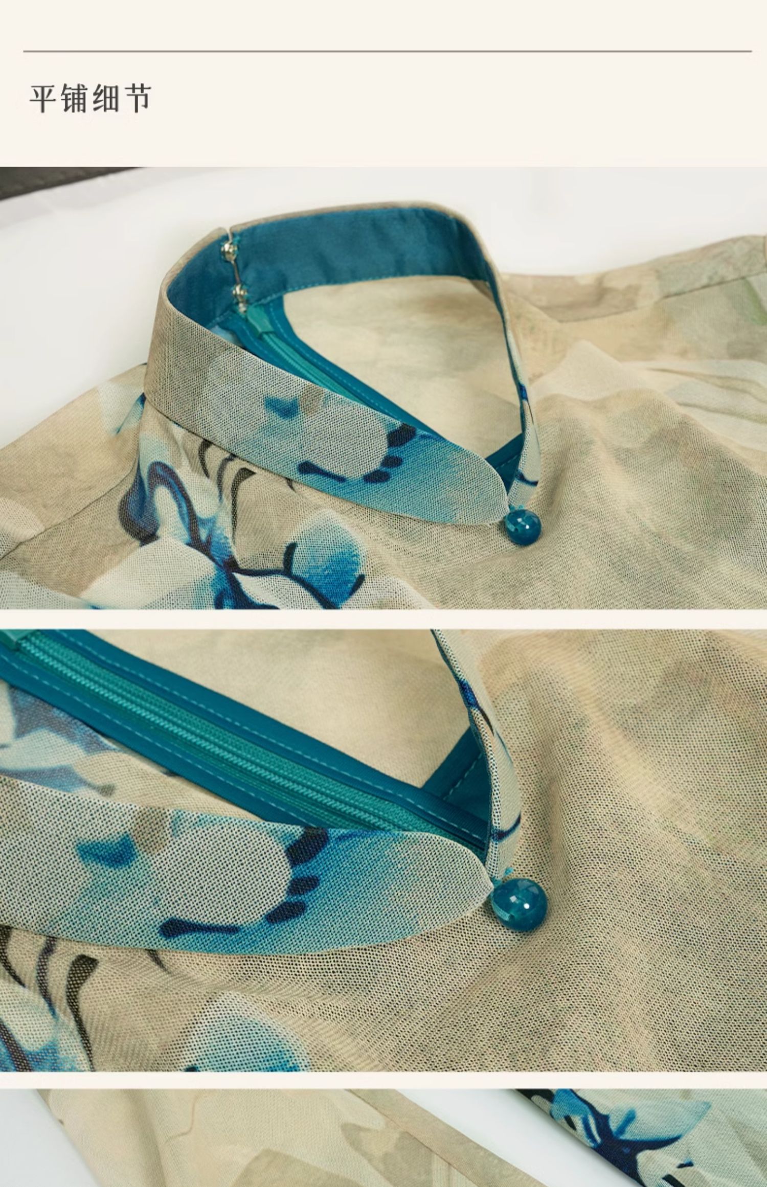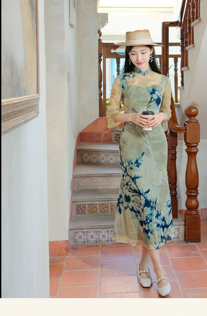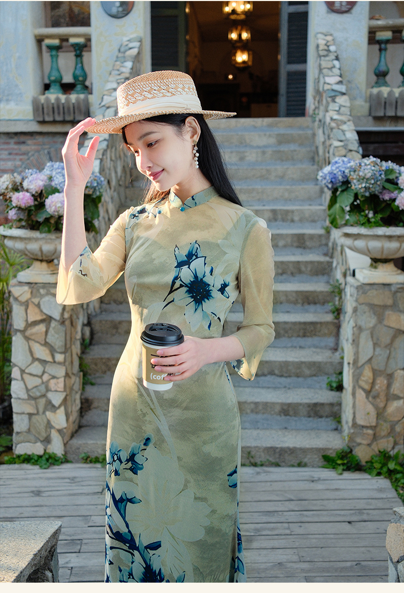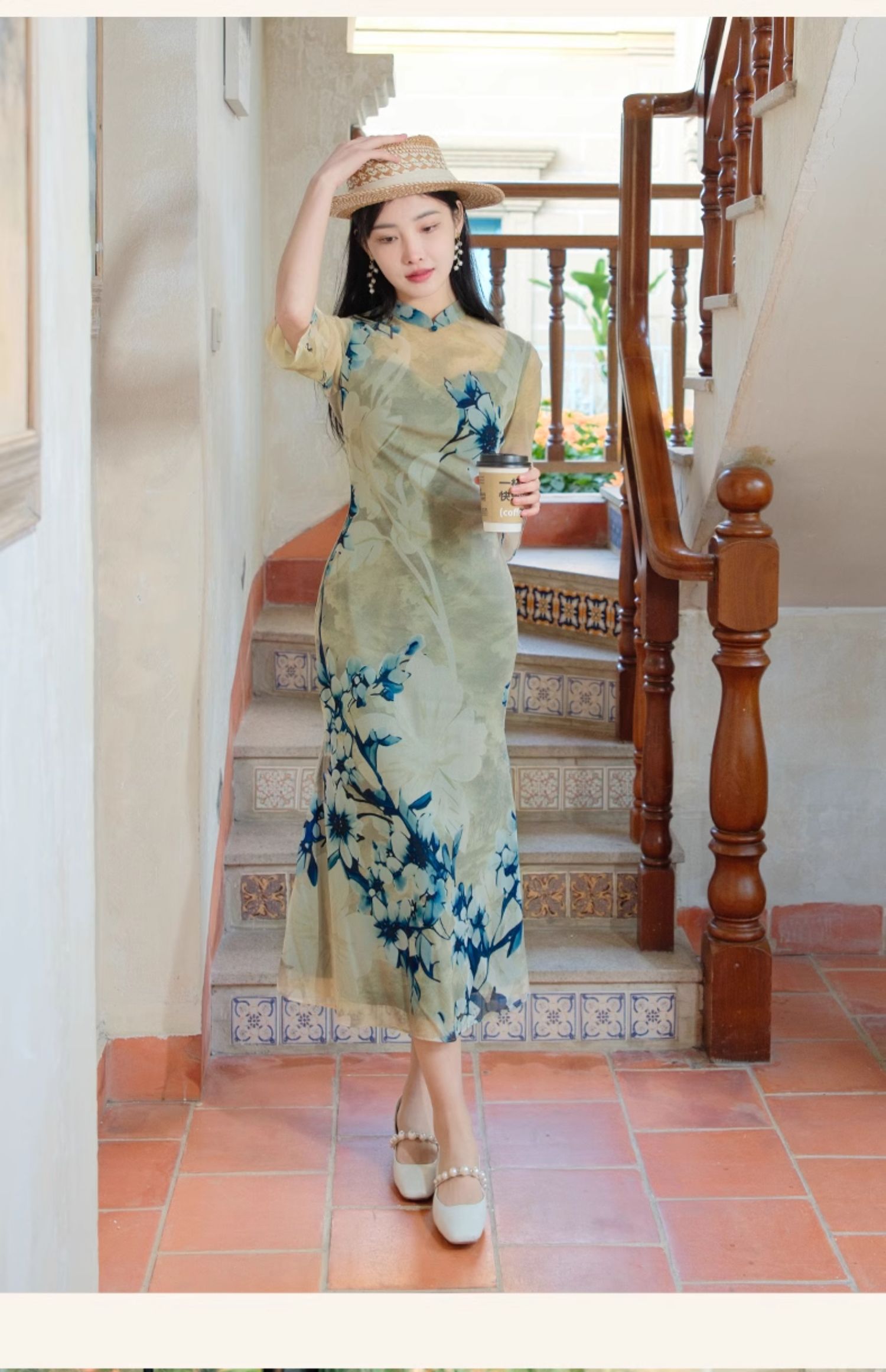 上海逸红颜夜樱2025年夏季新款醋酸针织网纱鱼尾新中式旗袍礼服裙