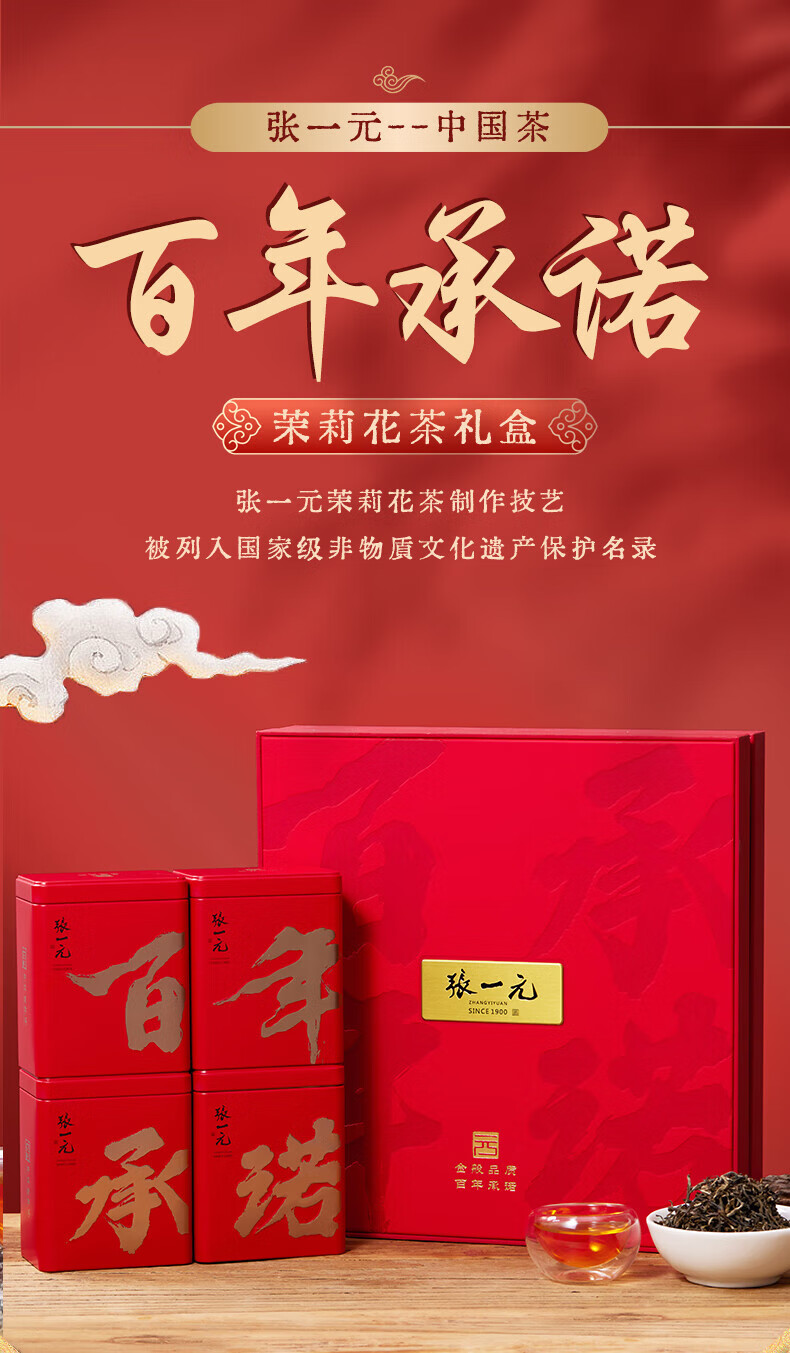 张一元百年承诺茉莉花茶礼盒340g【LXGWCJ3.0】