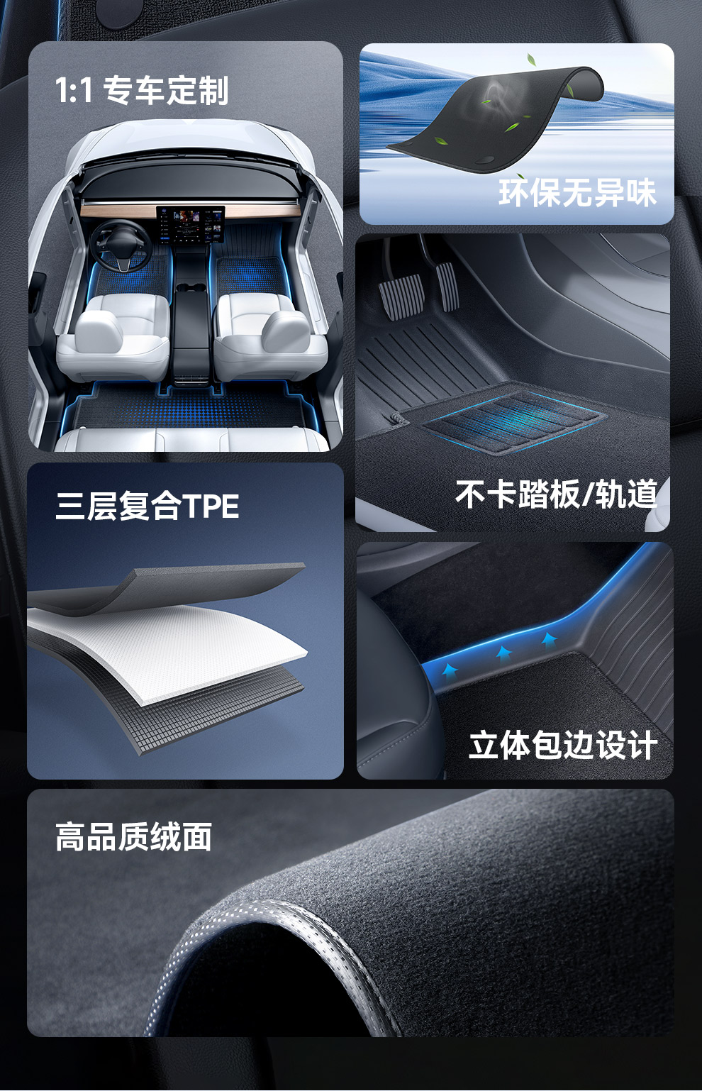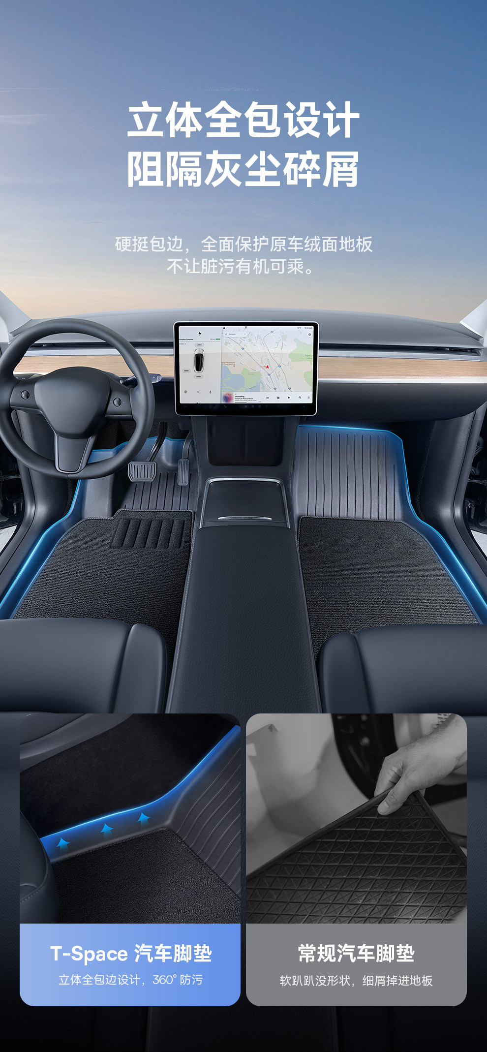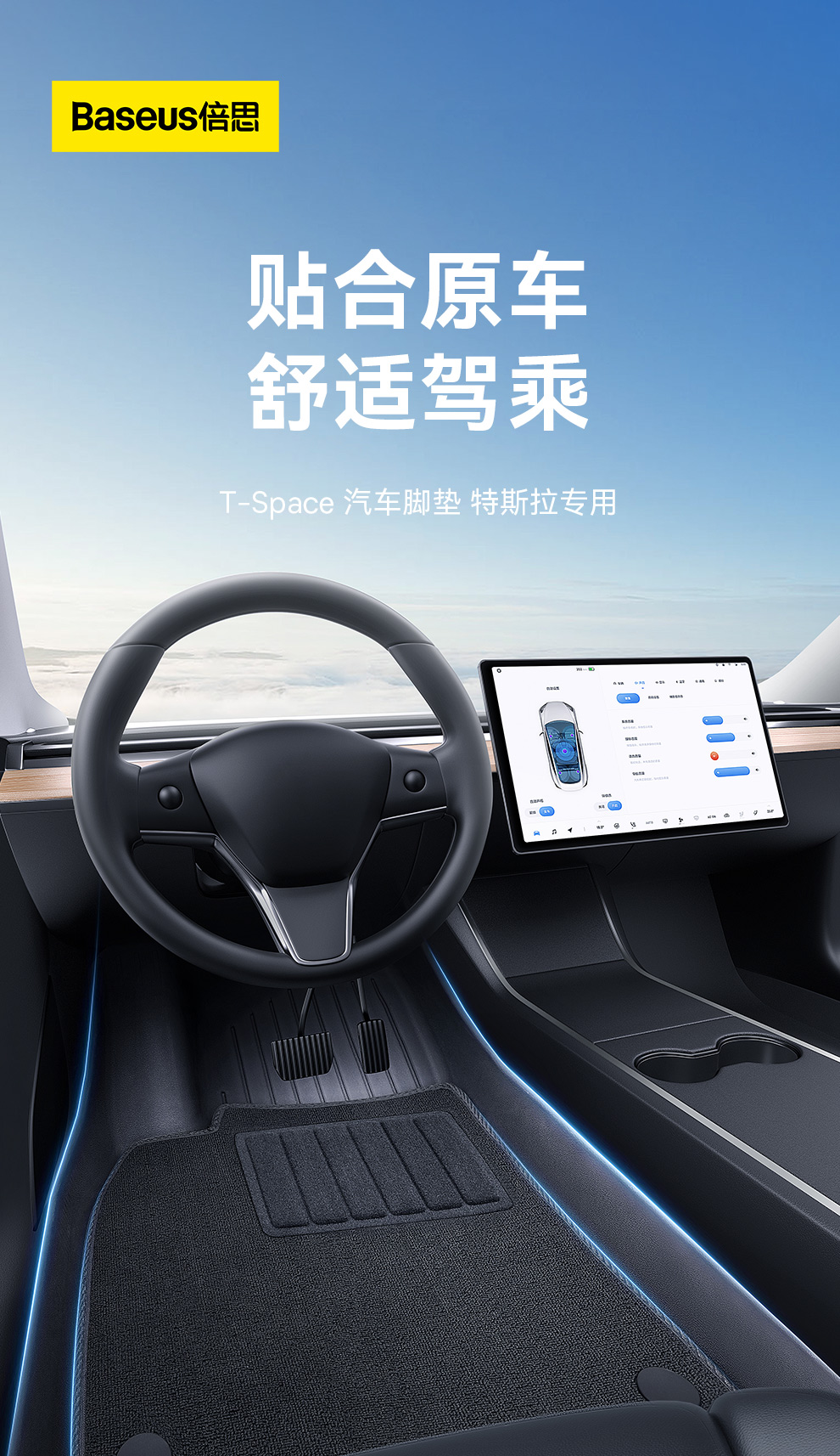 倍思 T-Space 汽车脚垫 特斯拉专用 Model Y 9件套 绒面