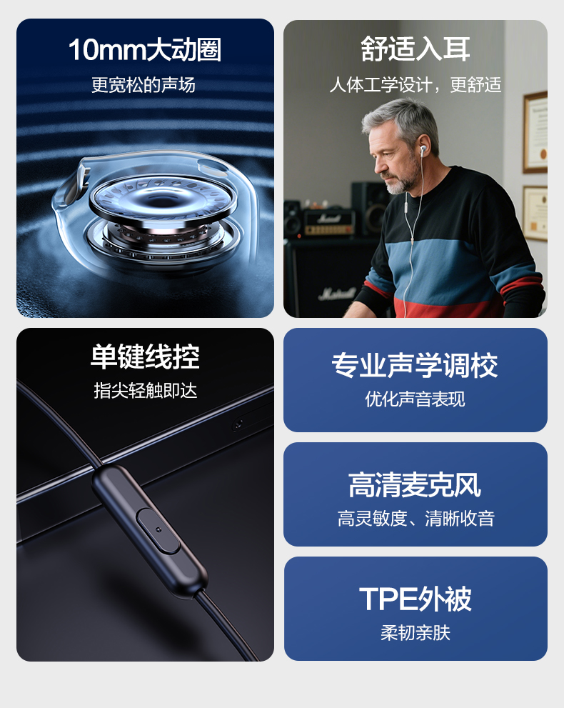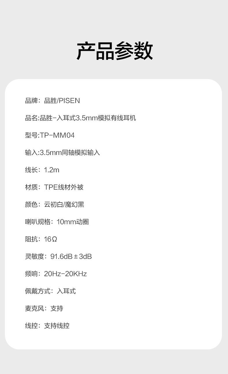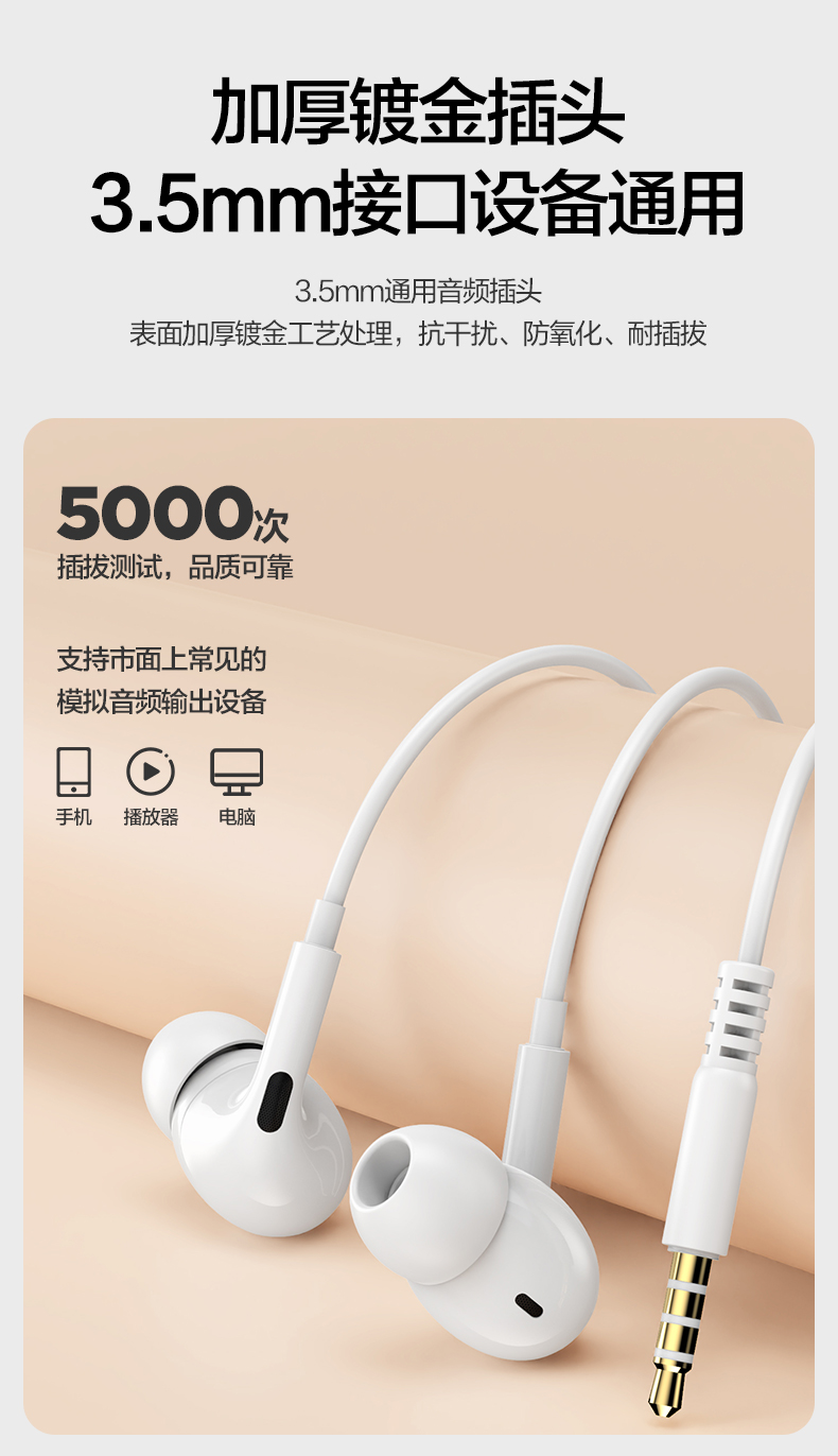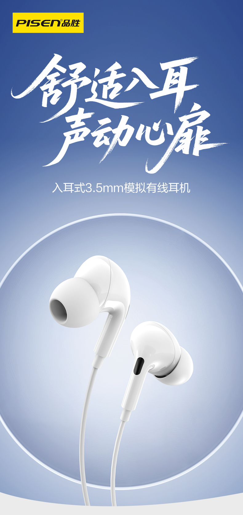 品胜 入耳式3.5mm模拟有线耳机 动圈喇叭/高保真音质 手机音乐耳机