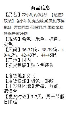 【超值2双装】宅小年仿麂皮绒UG风加厚棉拖鞋 男女同款 保暖舒适 柔软亲肤 冬季居家好物
