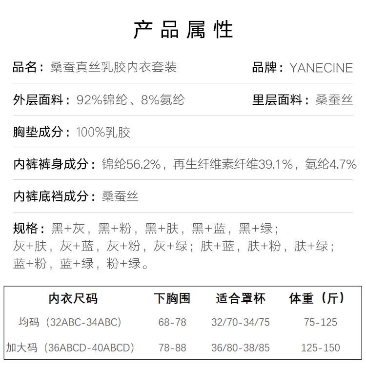 YANECINE 新年限量版蚕丝乳胶内衣 列维斯蕾丝舒适不变形