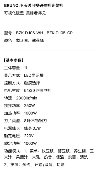 Bruno小乐透可视豆浆机1000ml
