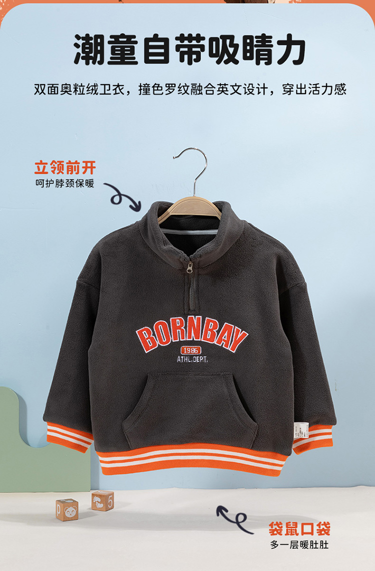 秋季新款复古学院风微翻领卫衣儿童装洋气上衣ZB3DS037