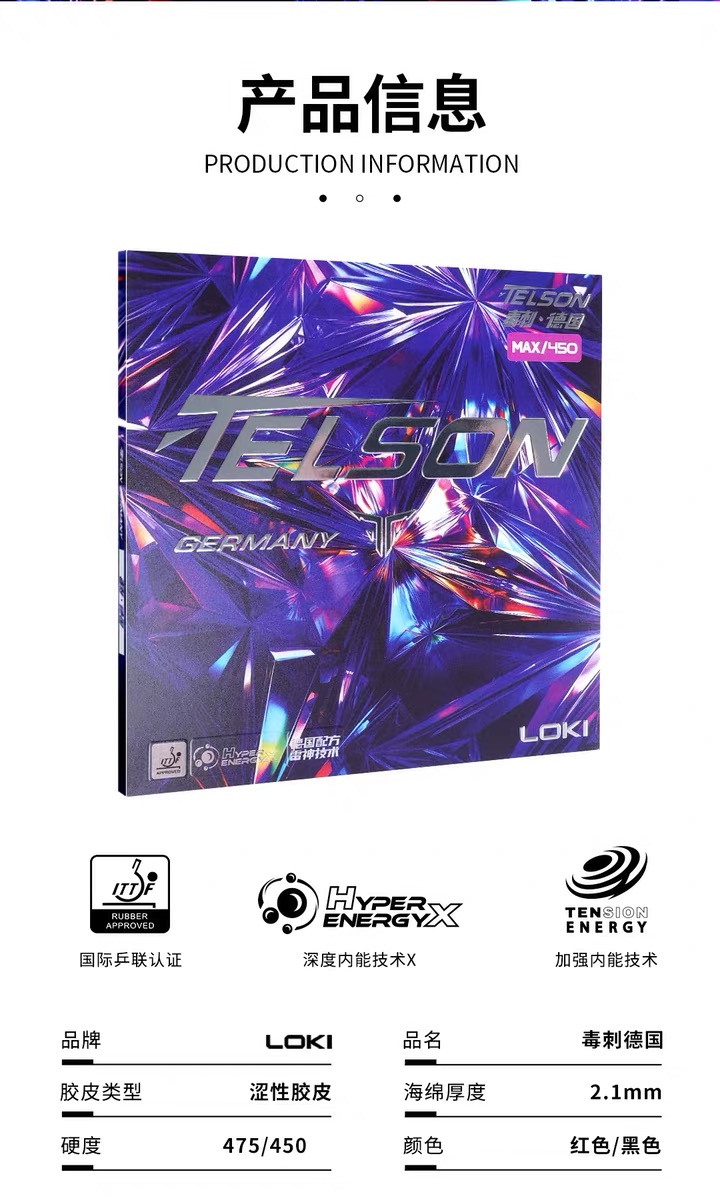 LOKI雷神 毒刺中国 毒刺德国 内能乒乓球反胶套胶
