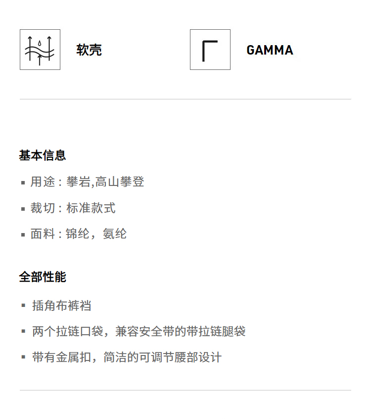 Gamma Pant的卖点可以总结为:一条以攀登为设计核心,但能完美覆盖徒步、旅行甚至日常通勤的“六边形战士”软壳裤。它最大的魅力在于将防护性、耐磨度和舒适体感巧妙地融合在了一起。